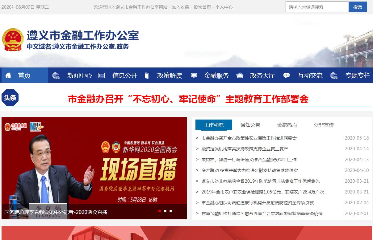 遵义市金融工作办公室主要职责:(一)贯彻执行国家、省关于金融工作的方针、政策、法律、法规和市委、市政府关于发展地方金融业的意见和部署;研究拟订全市金融业发展战略和中长期规划并组织实施;制定由地方政府管理的各类金融组织及类金融组织发展的办法和支持措施;提出改善地方金融发展环境、促进金融业发展的意见和建议;研究分析宏观金融形势、国家金融政策和全市金融运行情况,为市政府提供决策依据。(二)负责协调、配合中央驻遵金融监管机构做好对全市各类金融机构的监管工作,推动辖内金融机构开展普惠金融工作,完成服务实体经济、防范金融风险、深化金融改革以及金融助推脱贫攻坚等各项任务。(三)负责联系协调驻遵金融机构、行业自律组织,协调解决金融业发展中应由地方解决的矛盾和问题,促进其为全市经济社会发展提供优质金融服务。(四)负责全市地方金融机构重大事项的指导、协调工作,会同有关部门做好市属金融机构的管理工作;负责全市科技金融、互联网金融、新金融业态的发展工作,负责对市属四大集团等相关企业进行融资业务指导。(五)负责由地方政府管理的各类准金融组织的管理工作;负责辖内小额贷款公司、融资性担保公司、融资租赁公司、商业保理公司、典当行、地方资产管理公司、网络借贷信息中介等金融组织和其他准金融组织的设立、变更审核和日常管理工作;负责会同、指导各县(市、区)政府和公安、司法部门做好由地方政府管理的各类准金融组织的风险控制和处置工作。(六)负责推进资本市场、保险市场发展。统筹、协调直接融资工作,制定扶持、推动地方企业上市和再融资的有关政策;负责全市拟上市公司培育、初审及推荐工作;管理企业上市专项奖励资金,负责对成功上市的企业进行奖励;协调推动企业发行企业债、公司债、短期融资券和中期票据等债务融资工作;指导、推动创业投资基金、股权(产业)投资基金等规范发展并进行日常监督;组织开展全市政策性农业保险工作,引导保险资金支持地方经济建设;配合有关部门指导和协调产权交易市场的建设和运行工作。(七)负责牵头组织协调有关部门防范、化解和处置地方金融风险;处理地方金融突发事件和重大事件;在职责范围内,负责本单位、本行业的安全生产和消防安全工作;承担市集中整治非法集资工作领导小组办公室日常工作,协调推动依法查处非法集资、非法证券期货活动,维护本辖区内金融秩序。(八)切实维护金融机构及其服务对象的合法权益,会同有关部门构造良好金融生态环境,促进金融健康发展。(九)参与全市投融资体制改革工作,参与策划、指导、规范我市重大建设项目、重大资产整合的融资工作;支持投融资平台转型发展,配合有关部门指导、协调和考核投融资主体融资工作。(十)负责全市金融人才资源开发管理、金融人才队伍建设及培训工作。(十一)指导全市各县(市、区)金融办工作。(十二)承办市委、市政府交办的其他工作任务。