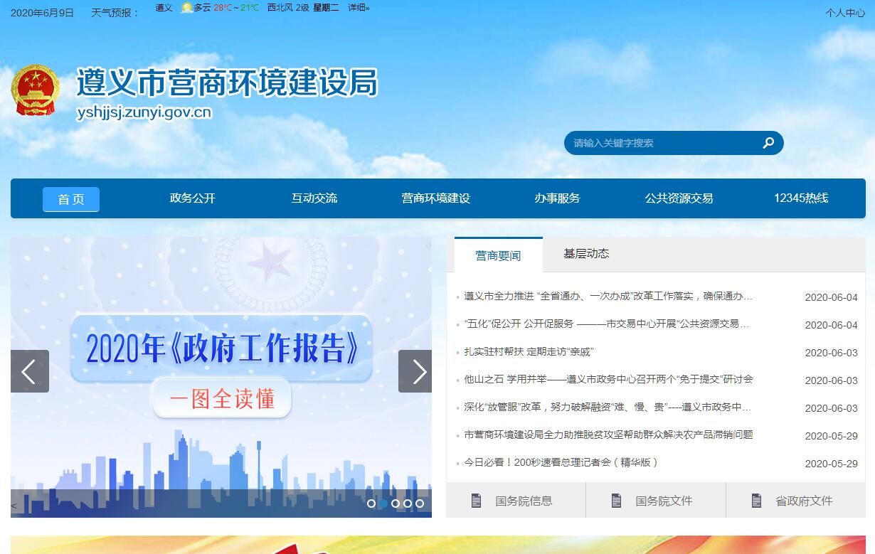 遵义市营商环境建设局主要职责:(一)贯彻落实党中央、国务院和省委、省政府关于加强和优化营商环境建设的法律法规和方针政策及市委、市政府部署要求,组织起草相关地方性法规和规章草案。(二)拟定全市营商环境建设工作规划和年度计划,拟订加强和优化关于营商环境建设的政策、措施、制度并组织实施;组织指导、统筹协调各县(市、区)、市直各部门营商环境建设工作;协调解决营商环境建设中的重大问题,对全市优化营商环境建设工作进行绩效考评。(三)负责全市营商环境建设监督检查工作,受理督办营商环境相关投诉、举报,与相关部门建立联动机制,协助和配合有关部门查处营商环境建设违法违纪行为。(四)负责组织开展全市机关效能建设、政务公开工作;受理政务投诉及查处等工作;负责全市机关效能建设、政务公开工作的检查、考评;研究拟定全市政务公开、机关效能建设措施并组织实施。(五)负责对进驻市政务服务大厅政务服务事项的组织协调、监督管理和指导服务;负责行政权力运行制度系统、行政权力电子监察系统建设等工作,指导全市各级政务服务中心建设,统筹做好“互联网+政务服务”建设推进工作;负责市级“12345”政务服务热线平台规划建设和运行监督管理工作。(六)负责对公共资源交易工作进行监督管理;负责督查市级有关部门公共资源交易项目进入公共资源交易中心交易;受理相关投诉、举报及办理等工作,协助和配合有关部门查处交易活动中的违法违纪行为。(七)承担市委营商环境建设局委员会、市政务公开领导小组、市公共资源交易管理委员会和市效能建设办公室日常工作。(八)结合部门职责,加大科技投入,提高科技创新能力,为推进创新驱动发展提供保障;负责本部门、本行业领域的安全生产和消防安全工作;按规定做好大数据发展应用和政务数据资源管理相关工作,依法促进部门政务数据资源规范管理,共享和开放。(九)完成市委、市政府交办的其他任务。