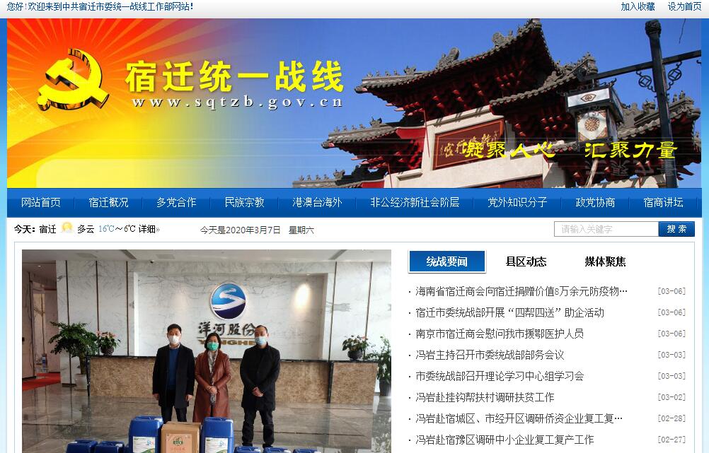 宿迁统一战线网由中共宿迁市委统一战线工作部主办。
