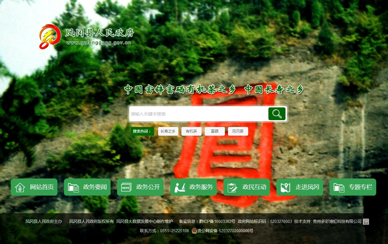 《诗经·大雅》云:“凤凰鸣矣,于彼高冈。梧桐生矣,于彼朝阳。”凤冈于明万历二十九年(1601年)建县,是革命老区遵义的东大门。介于东经107°31′20″—107°56′42″和北纬27°32′13″—28°21′14″,地处大娄山南麓,乌江北岸,幅员面积1885.09平方公里,辖13镇1乡86个村(社区),总人口45万。属中亚热带湿润季风气候,平均海拔720米,年均气温15.2℃,年均降雨量1200mm,无霜期270天,森林覆盖率67%,土壤富含锌硒,冬无严寒,夏无酷暑,雨量充沛,日照充足,生态优美,气候宜人。凤冈距名城遵义86公里,遵义新舟机场70公里,省会贵阳220公里,重庆334公里,“三高一铁一码头”构筑起了通江达海的立体交通网络,成功融入遵义、贵阳、重庆“123”小时经济圈。凤冈享有中国富锌富硒有机茶之乡、中国名茶之乡、中国有机食品生产示范基地、全国绿化造林百佳县、全国生态建设示范县、全国休闲农业与乡村旅游示范县、中国长寿之乡、中国健康小城等多项殊荣。凤冈正秉承“生态立县”方略,坚持“红色传承,推动绿色发展,奋力打造西部内陆开放新高地”,扬茶、强牛、靓花、添彩,全域旅游蒸蒸日上,好山好水好生态,卖茶卖酒卖健康,通过产业带动,经济引领,民生优先,共筑45万茶乡人民小康梦。 2019年,完成地区生产总值92.29亿元,增长8.7%,三次产业结构调整至29.3∶24.7∶46。规模工业增加值增长18%。500万元以上固定资产投资增长1.5%。社会消费品零售总额20.05亿元,增长2.6%。城镇和农村居民人均可支配收入分别为31941元和12340元,分别增长9.6%和10%。
