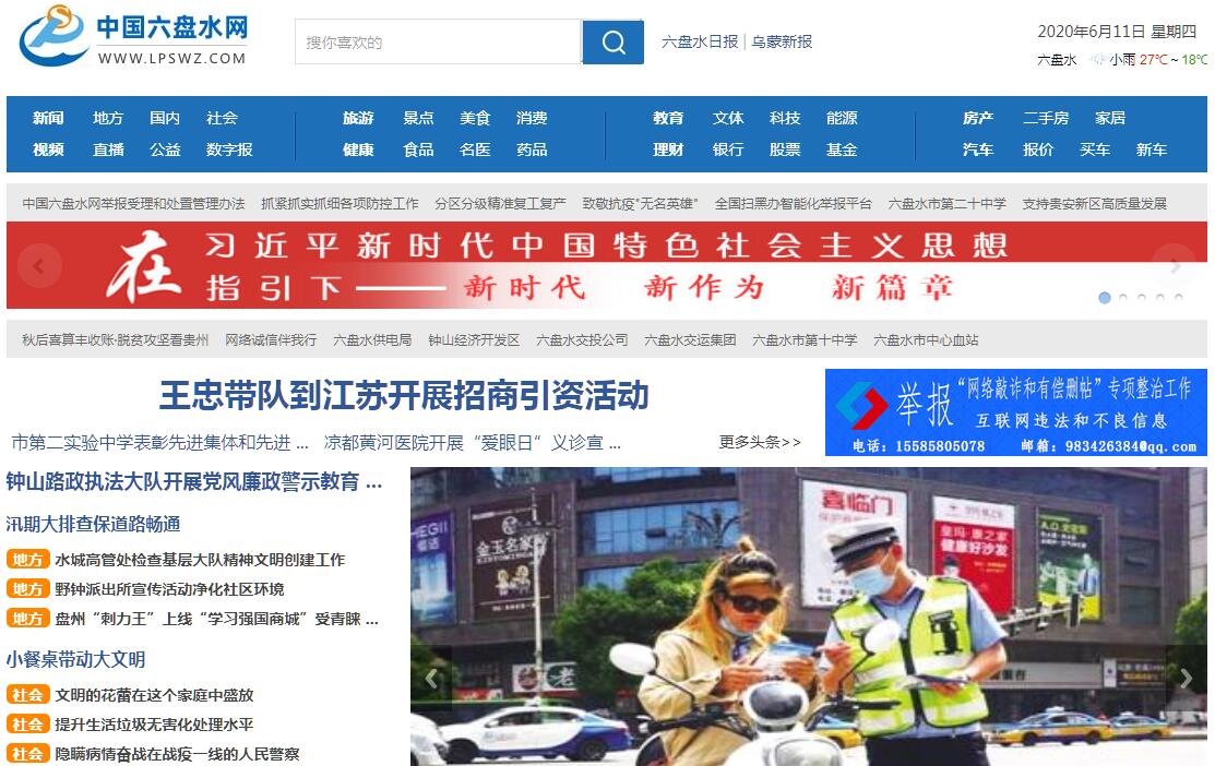 | 网站简介: 中国六盘水网由六盘水日报社主办。中国六盘水网是六盘水市第一新闻门户网站,提供六盘水本地新闻,六盘水社会新闻,六盘水图片新闻,六盘水视频新闻,生活资讯,消费购物,六盘水吃喝玩乐,六盘水旅游,六盘水房产装修等综合信息。 |