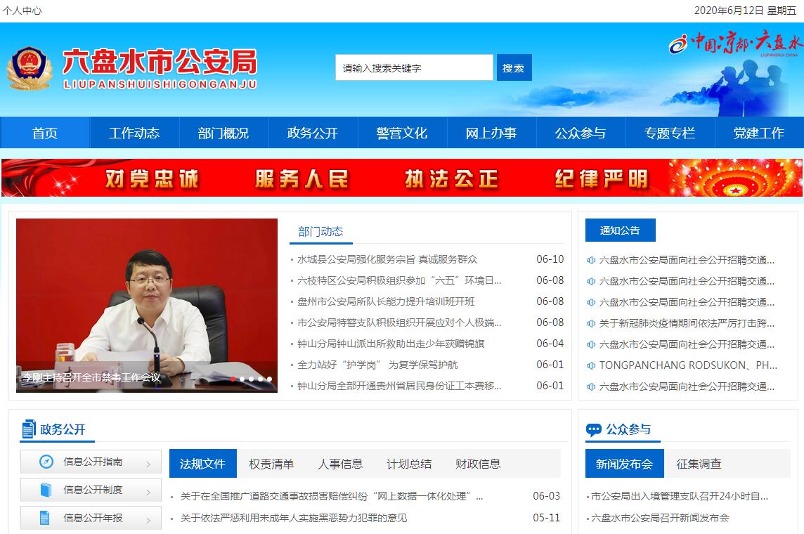 六盘水市公安局主要职责:1、贯彻执行党和国家有关公安工作方针、政策和法律法规,结合本地实际研究制定贯彻实施意见和措施;领导和监督检查全市公安工作。2、掌握影响稳定、危害国内安全和社会治安的情况,分析形势、制定对策。及时向省公安厅和市政府报告有关情况和重要信息,并提出处理意见;向所辖六枝特区公安局、盘县公安局、水城县公安局、钟山公安分局传达省公安厅和市政府的指示,并监督落实。3、直接侦破特大刑事案件,组织指导本市重大案件和跨县、特区、区重大案件的侦破工作,协调或直接指挥处置重大治安案件和突发事件。4、指导、监督和参与全市公安机关依法查处危害社会治安秩序的行为,依法管理特种行业等工作。5、组织、指导全市公安机关依法管理中国公民出入境和外国人在本地居留、旅行等有关工作。6、指导全市公安机关消防工作,协助市政府落实《消防法》规定的各项措施。7、依法管理全市道路交通安全,维护交通秩序;负责机动车辆的管理和驾驶员考核发证及管理工作;指导、参与重大交通事故的查处。8、指导、监督全市公安机关对国家机关、社会团体、企事业单位和重点工程的治安保卫工作以及群众性治安保卫组织的治安防范工作。9、指导、监督全市公安机关对社会公共信息网络的安全监察工作;对全市信息网络和重要信息系统的安全实施监督、检查和指导;开展对网络信息的监控;侦查、防范和打击针对和利用信息网络的违法犯罪。10、指导、监督全市公安机关依法执行刑罚和对看守所、治安拘留所、强制戒毒所(中心)、收容教育所的管理工作。11、指导、监督或承办公安机关执法监督、执法过错责任追究、行政复议、听证、应诉、国家赔偿及劳动教养、少年收容教养案件工作,承办市劳动教养委员会的具体工作。12、组织实施对到本市视察工作的党和国家领导人、重要外宾、省主要领导的安全警卫工作和大型社会政治活动的安全保卫工作。13、组织、指导全市公安机关开展禁贩、禁吸、禁种、禁制毒品工作,承担市禁毒委员会的具体工作。14、研究制定加强全市公安科技、信息技术、刑事技术、行动技术的方案和措施并组织实施。15、研究制定加强全市公安机关装备、被装、经费等警务保障和措施;指导监督所辖县、特区、区公安机关警务保障标准、制度的落实工作。16、按规定的权限,对武警部队执行公安任务实施领导和指挥。17、研究制定全市公安机关人员培训、教育、优抚、表彰的方案和具体措施;按规定权限管理机构编制,警衔和干部人事等工作。18、研究制定全市公安队伍监督管理的规章制度和具体措施,并组织落实;组织指导督察工作;查处、督办重大违纪案件。19、组织、指导全市公安机关与邪教组织的斗争工作。20、指导铁路、民航、林业等公安部门的公安业务工作。21、承办市人民政府和省公安厅交办的其他工作。