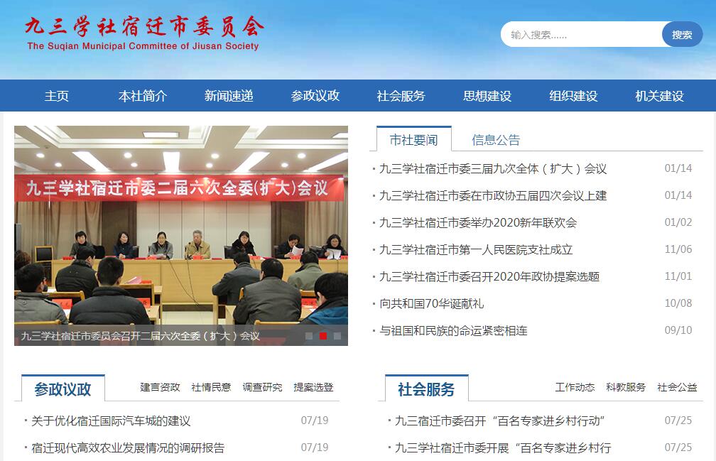 1996年淮宿分治,原淮阴市两名九三社员陆续调入宿迁工作,2003年9月16日,宿迁共有九三社员8名,九三学社宿迁支社经九三江苏省委苏社字【2003】42号文批准成立,隶属于九三学社江苏省委,2003年9月26日召开支社成立大会。2004年6月社员发展到36名,中共宿迁市委同意成立九三学社宿迁市委筹委会和主任委员建议人选。2005年7月,共有社员44人,支社的组织规模和社员素质均达到了成立市委的要求,宿迁市委统战部报请省委统战部批准同意成立九三学社宿迁市委筹委会,2005年8月18日省委统战部下文同意成立九三学社宿迁市委员会筹委会,任命陈菊兰同志为主任委员,肖大松、张旭为委员。2005年11月2日,社省委九三苏发【2005】53号文批复同意成立四个支社及支社领导班子人选,要求按有关规定做好选举工作。2005年11月8日,召开筹委会成立大会。2007年6月25日九三学社宿迁市委员会召开成立大会(暨第一次代表大会),共有社员70名,曹成同志当选主任委员,肖大松、张旭当选副主任委员。2011年12月22日上午,九三学社宿迁市委员会召开第二次代表大会,参会代表60人,武倩同志当选主任委员,张旭、陆红梅当选副主任委员。截至2012年4月,九三学社宿迁市委员会共有四个支社,五个专门委员会,社员129人,平均年龄39岁,全部为本科以上学历,高、中级职称,其中,博士、硕士研究生31人,占24%,高级职称51人,占40%,市政协副主席1人,县处级领导6人,省政协委员1人,市、区人大代表、政协委员18名,市政协常委4人。均年龄39岁。