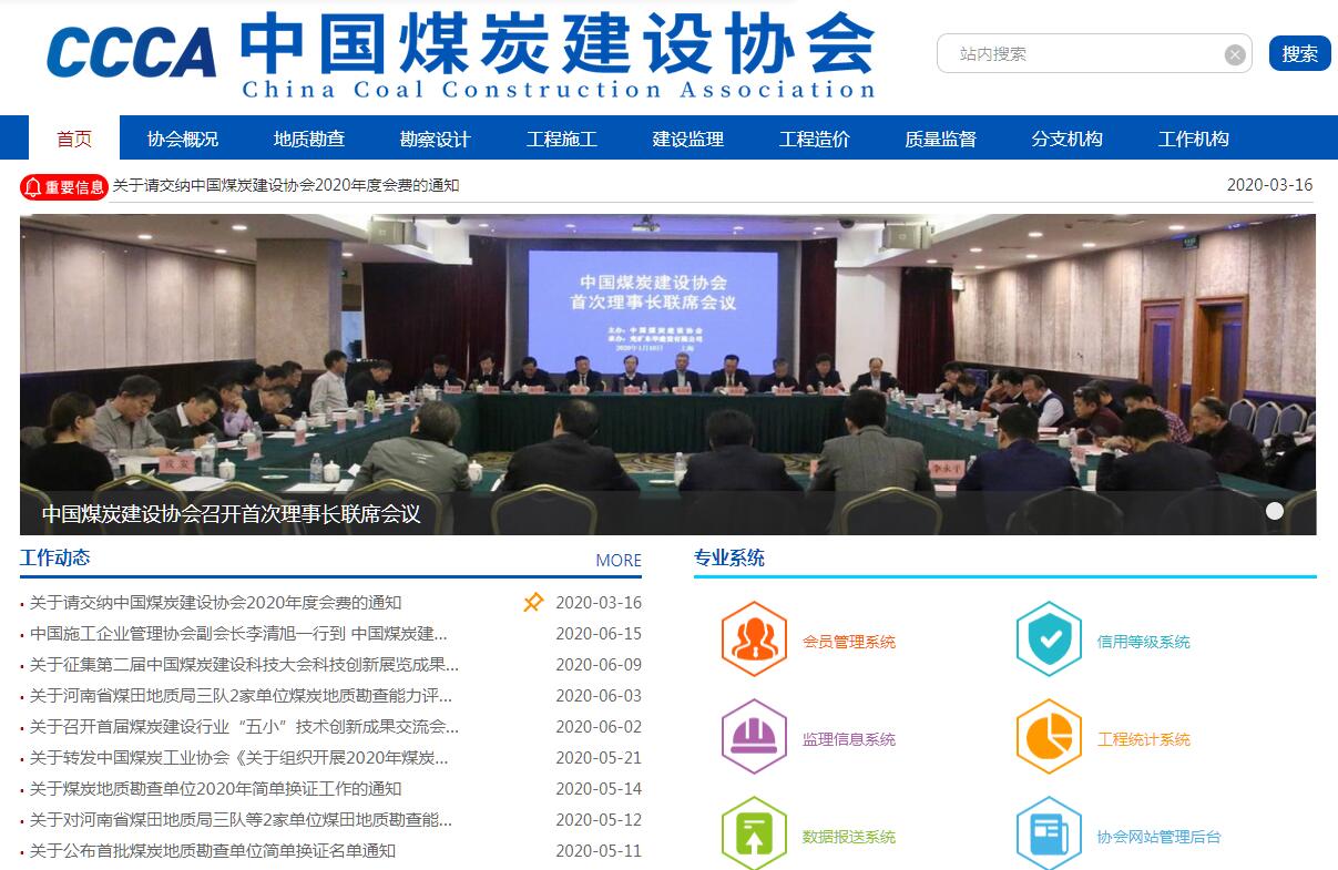 中国煤炭建设协会(China National Coal Construction Association),原名煤炭基本建设管理协会,是1986年5月25日经原煤炭工业部批准成立,1991年11月经民政部登记注册更名为中国煤炭建设协会。中国煤炭建设协会由全国煤炭行业地质、勘察设计、施工、监理、造价咨询、工程质量监督、科研院所等企事业单位、社会团体自愿组成的全国行业性协会,是经国家批准成立具有法人资格、非营利性的社会组织。中国煤炭建设协会每年召开理事会议,每四年举行换届选举。2017年12月6日召开了第八届会员代表大会,选举产生了新一届理事会,理事会由188名理事组成,其中:常务理事62人,理事长1人,副理事长17人(其中,兼职副理事长14人)。下设3个分支机构:勘察设计委员会、工程造价委员会、工程统计委员会;4个内设机构:秘书处、工程技术部、企事业部、会员部;另设独立法人事业单位1个,即煤炭工业建设工程质量监督总站。中国煤炭建设协会遵循党和政府的路线、方针、政策,遵守宪法、法律、法规和国家政策,遵守社会道德风尚,按照社会主义市场经济的要求,在会员单位和政府部门之间发挥桥梁纽带作用,以经济效益为中心,面向实际、面向基层、面向企业,推动改革开放,改善企业经营管理,促进技术进步,提高企业效益,反映会员单位的愿望和要求,维护企业的合法权益,为会员单位服务,发挥社会公正、中介协调、联系广泛和专家群体作用。为我国煤炭建设行业的改革和发展做出贡献。中国煤炭建设协会接受国务院国有资产监督管理委员会和民政部的业务指导和监督管理。