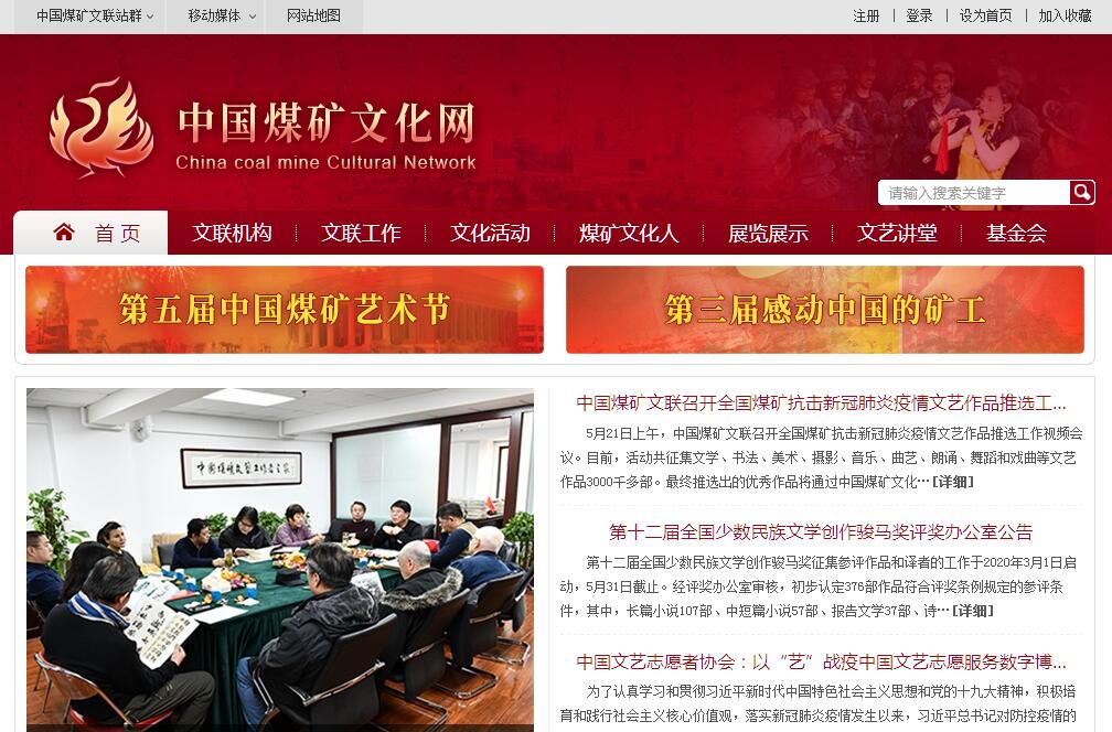 中国煤矿文化网由中国煤矿文化艺术联合会主办。1995年3月29日,中国煤矿文化艺术联合会正式宣告成立。煤矿文联的成立,是煤炭行业政治文化生活中的一件大事,它的成立既是客观形势发展的需要,也是煤炭系统专业和业余文化艺术工作者的迫切愿望。如果说1982年煤矿文化宣传基金会的成立标志着煤矿文化艺术事业的一次大跨越,那么,中国煤矿文联的成立就是新时期煤矿文化艺术事业的第二次跨越,标志着煤矿群众文化工作进入到了一个崭新的发展阶段。中国煤矿文联按文学艺术门类划分,下设12个分会,分别负责各自文艺领域的群众文化活动。这12个分会是:中国煤矿文联作家协会、中国煤矿文联书法家协会、中国煤矿文联美术家协会、中国煤矿文联摄影家协会、中国煤矿文联音乐家协会、中国煤矿文联舞蹈家协会、中国煤矿文联曲艺家协会、中国煤矿文联影视戏剧家协会、中国煤矿文联文化艺术理论研究会、中国煤矿文联集邮协会、中国煤矿文联朗诵协会、中国煤矿文联志愿者协会。其中,中国煤矿文联作家协会、中国煤矿文联书法家协会、中国煤矿文联摄影家协、中国煤矿文联音乐家协会、中国煤矿文联曲艺家协会、中国煤矿文联影视戏剧家协会、中国煤矿文联集邮协会均是国家级协会的团体会员单位。煤矿文联的组建,改变了煤矿文化工作的运行模式和管理机制,进一步整合了煤矿文化的资源,为完善煤矿文化的运行系统,建立正常有序的长效机制,提供了坚强有力的组织保证,从而促进了全国煤矿群众文化工作的深化提高与振兴繁荣。特别是进入21世纪以来,我国的社会主义现代化建设已经进入一个崭新的发展阶段,煤炭工业也发生了根本性的变化。从机构的改革设置上来说,煤炭企业的管理权限下放了,煤炭部撤销了,新成立了国家煤矿安全监察局和国家安全生产监督管理总局,对煤炭企业及所有生产企业行使安全监察职能;改制后的中国煤炭工业协会,对煤炭行业和国有煤炭企业的改革和战略性重组进行指导。在这个大背景下,煤矿文联在煤炭工业协会党委的指导下,积极调整工作思路,拓宽工作领域,始终保持了煤矿文化工作与煤炭经济建设的同步发展,在更好地为企业改革服务,为煤矿职工服务的同时,形成了一整套富有煤炭行业特色的较为完善的运行系统和运作模式,推动着煤矿文化工作健康有序地向前发展。
