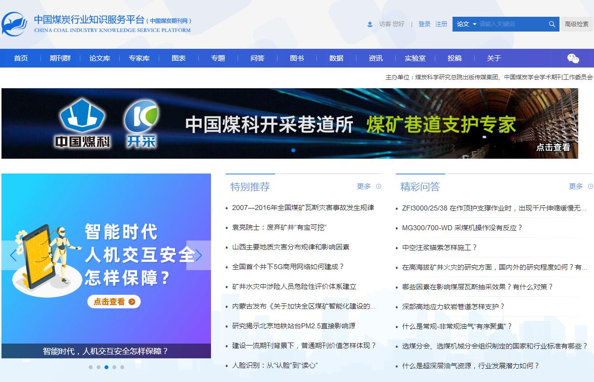 中国煤炭行业知识服务平台,创办于2015年,经过三次版本升级,目前已实现的功能主要有三个方面:①期刊集群展示平台。知识服务平台现有加盟行业科技期刊62种,其中Ei收录期刊5种,中文核心期刊19种,中国科技核心期刊26种,英文期刊2种,基本涵盖了煤炭行业所有科技期刊。②投审稿综合工作平台。建设了62种期刊的“统一投审稿端口”,作者、审稿专家、编辑可通过“统一投审稿端口”直接进入各刊的投审稿系统。③行业数据库集成平台。目前建设有学术论文库、专家库、实验室库、行业咨询库等4个数据库,其他数据库内容也正在不断补充之中。“中国煤炭行业知识服务平台”是我国煤炭行业第一个专业化知识服务平台,在有效聚集煤炭领域数字内容资源,推动国家知识服务体系建设等方面发挥了重要作用;同时,“中国煤炭行业知识服务平台”的建成,大大加快了行业期刊出版的集约化和数字化进程,为行业期刊从内容服务向知识服务转型奠定了基础。2018年,平台荣获中国煤炭工业协会评选的“煤炭企业管理现代化创新成果(行业级)二等奖”。作为传统媒体与新兴媒体融合出版的成功案例,“中国煤炭行业知识服务平台”还入选了中国科协发布的《中国科技期刊发展蓝皮书(2018)》。