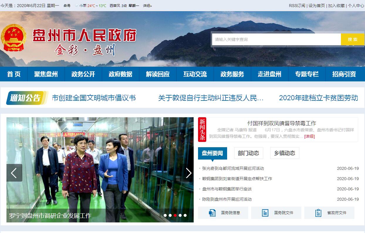 盘州市地处滇黔桂三省区结合部,是贵州省的西大门,位于六盘水市西南部,国土面积4056平方公里,境内有2个省级开发区,1个市级产业园区,下辖14镇6街道7乡,506个村(居),聚居着汉、彝、苗、白、回等29个民族,人口120万。盘州市历史文化悠久,交通区位优势突出,矿产资源富集,旅游资源丰富;气候舒适宜人,生态环境优美,是世界古银杏之乡;是贵州面向云南和东南亚开放的桥头堡;是中国南方能源战略基地;是云贵交通、能源、商贸、物流、旅游的重要节点,是毕水兴经济带的中心腹地。自然气候宜人。全年平均气温15.2℃,年均无霜期271天,日照时数1593小时,年均降水量1390毫米,雨热基本同季。境内属喀斯特地貌,以高原山地为主体,整个地势西北高,东南低,中南部隆起。全市各类土地面积为606万亩。植被类型从亚热带到暖温带的植物几乎都能生长,森林覆盖率达60%。境内有4个国家4A级景区、4个省级旅游度假区,集险、奇、秀于一体,自然风光与人文景观交相辉映,特别是有“活化石”之称的千年古银杏树群,被誉为“世界古银杏之乡”。物产资源丰富。盘州市境内现已探明的矿产资源有煤、铁、铜、黄金等20多种,其中煤炭资源以储量大、品种全、质量优等特点著称,现已探明储量105亿吨,远景储量380亿吨,储量分别占六盘水市、贵州省的60%和15%,境内有盘江精煤公司、盘县电厂、盘南电厂、响水煤矿、松河煤矿等大中型煤电企业及89个地方煤炭企业,是贵州省乃至全国的重点产煤县(市)和“黔电送粤”重要电源点,被誉为“煤电之都”。 交通快捷便利。盘州市自古以来就是由黔入滇的交通要道。320国道、国家高速公路G60镇胜段横穿东西,212省道和毕水兴高速公路纵贯南北,贵昆铁路盘西支线、南昆铁路、水红铁路在市中心城区交汇,沪昆高铁通车,规划建设盘州官山机场。文化底蕴深厚。境内距今约20至30万年前的古人类文化遗址“盘县大洞”和距今约2.4亿年前的新民鱼龙化石遗址名扬中外;被誉为佛教八小名山的“丹霞山”孤峰耸立;明代著名地理学家徐霞客曾于崇祯十一年(公元1638年)亲临盘州市境内考察,记载了“碧云洞”喀斯特溶洞景观的千奇百怪;历经六百余年历史洗礼的“双凤古城”独具魅力;红二•六军团盘县会议会址以及众多的历史文化遗迹绽放异彩,有彝族火把节、回族古尔邦节、布依族歌节等民族节日,有“海马舞”“羊皮鼓舞”“耍马舞”“芦笙舞”等民间舞蹈,深受国内外人士青睐。2018年,完成地区生产总值596.44亿元、同比增长11.3%,一般公共预算收入完成51.81亿元、同比增长2.54%,500万元及以上固定资产投资同比增长20.02%,社会消费品零售总额完成101.43亿元、同比增长7.9%,城镇、农村常住居民人均可支配收入分别达29240元、10310元,分别同比增长9.3%、10.3%,位列全国县域经济与县域基本竞争力百强县市第69位。
