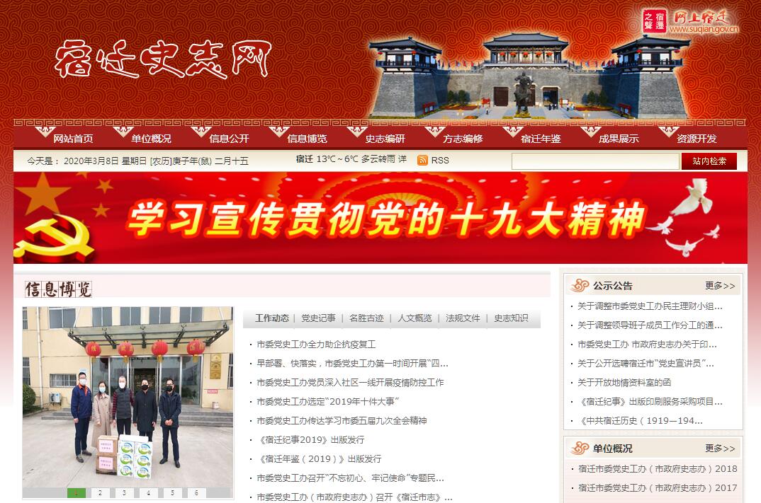 | 网站简介: 宿迁市人民政府史志工作办公室主要职能:(一)主管全市的地方史志工作;(二)拟定全市史志工作规划和编纂方案,制定业务规范;(三)负责《宿迁市志》的编纂、出版、发行工作;(四)编辑、出版、发行政府综合年鉴——《宿迁年鉴》;(五)搜集、保存地方志文献和资料,组织整理旧志;(六)指导、审查和协调县区和市直单位综合志、部门志、专业志编修工作;(七)开发利用地方志资源,搜集整理地情资料,管理维护地情网站——宿迁史志网;(八)承办市政府及省地方志办公室交办的各项任务。 |