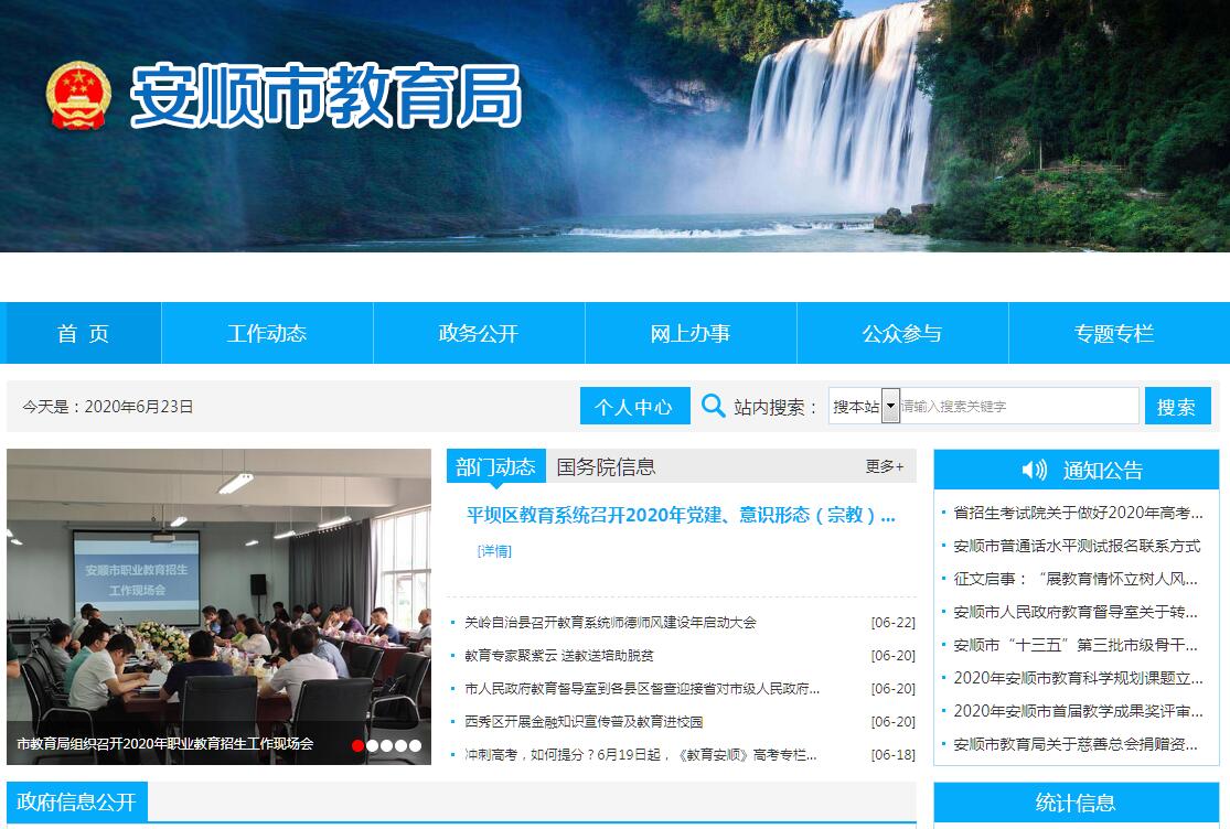 安顺市教育局主要职责: (一)贯彻落实党和国家的教育方针、政策及法律、法规;拟订全市教育事业发展规划并指导、协调和监督实施。(二)落实立德树人根本任务,努力构建德智体美劳全面培养的教育体系,把立德树人融入思想道德教育文化知识教育、社会实践教育各环节,贯穿基础教育、职业教育、高等教育各领域。(三)规划和指导全市基础教育工作,以农村教育为重点,提升学前教育普及、义务教育巩固和高中阶段教育普及水平。推进学前教育普及普惠,推进义务教育优质均衡、普通高中优质特色及中等职业教育和普通高中协调发展,促进公共资源向农村和民族地区倾斜,促进基本公共教育服务均等化发展。办好特殊教育,推进适龄残疾儿童少年教育全覆盖,全面推进整合教育,促进医教结合。指导与评估县域内义务教育优质均衡工作。(四)加快发展现代职业教育,提高职业院校的办学水平和质量,积极推进职业教育体制机制创新,进一步增强职业教育发展活力。(五)审批中等职业学校和普通高中学校的设置和变更。(六)统筹和指导少数民族教育工作,协调对民族地区的教育援助。(七)统筹规划、综合协调和指导管理民办教育,贯彻落实促进民办教育发展的政策措施,规范办学秩序,促进民办教育事业健康发展。(八)加强服务全面的终身学习体系建设,创新工作体制机制。指导职业学校和高等学校提升继续教育与社会培训服务功能。(九)规划、指导全市教育系统党的建设、思想建设、组织建设、作风建设、纪律建设、制度建设,推进教育系统从严治党,加强教育系统基层党建工作。规划、指导全市教育系统统战、教育工会、学校教代会、关工委、妇委会等工作;指导市直教育系统学校干部队伍建设,参与考察学校领导班子,提出领导班子充实调整方案。(十)规划、指导全市教育领域“放管服”改革,推进全市中小学教学体制改革,深化教育督导改革,推进教育管办评分离。组织、指导全市高考综合改革和普通高中课程改革。(十一)规划、指导全市各级各类学校德育、法制宣传教育、体育卫生与艺术教育及国防教育工作,指导各级各类学校的安全稳定工作。(十二)加强新时代教师队伍建设,统筹规划教育系统人才队伍建设,组织实施教师资格认定,师德师风建设工程,名优教师培养工程。落实教师待遇各项政策。按管理权限和分工,负责全市中小学人员招聘录用,负责市直属学校人员编制、职称评聘、培养培训和考核奖惩的相关工作。(十三)统筹管理全市教育系统对外交流工作,负责协调通香港、澳门特别行政区和台湾地区的教育交流。(十四)管理、指导国家教育统一考试,指导高等学校、中等职业学校开展毕业生就业创业工作。(十五)规划、指导并组织实施全市基础教育课程改革、课程体系建设,教育研究工作。(十六)规划、指导并组织实施全市中小学教育信息化、实验教育教学工作。(十七) 统筹管理本部门教育经费,参与拟订教育经费筹措、教育拨款、教育基建投资的政策措施;管理国内、国外对我市的教育援助、教育贷款;监督全市教育经费的筹措和使用情况;负责全市教育基本信息的统计、分析和发布。(十八)统筹管理全市学生资助工作,承担高等学校、普通高中、中等职业学校国家助学金及相关免学费(补助)、教材费(补助)、住宿费(补助)、义务教育寄宿生生活补助、学前教育资助的管理工作,承担社会对学生资助的管理工作;管理全市学生营养改善计划工作。(十九)负责全市教育系统财务内部审计。(二十)承担市人民政府教育督导室、市招生委员会、市语言文字工作委员会的具体工作。