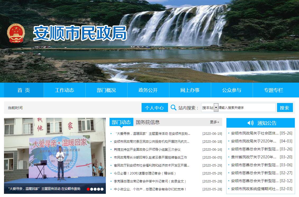 安顺市民政局主要职责:(一)贯彻执行国家、省有关民政工作的法律法规、方针政策和决策部署;拟订民政工作政策措施、规划和标准并组织实施。(二)依法对社会团体、社会服务机构进行登记、管理和执法监督。(三)组织实施社会救助政策、标准,统筹社会救助体系建设,负责城乡居民最低生活保障、特困人员救助供养、临时救助和生活无着流浪乞讨人员救助工作。(四)负责全市乡(镇)以上行政区划的设立、撤销、命名、更名、隶属关系变更、政府驻地迁移和行政区划变更的审核上报工作;指导全市地名管理工作;负责县级行政区域界线的管理工作。(五)指导城乡基层群众自治组织建设、城乡社区建设和社区服务体系建设;提出加强和改进城乡基层政权建设的建议,推动基层民主政治建设。(六)负责婚姻登记工作,推进婚俗改革,指导婚姻登记机构的管理工作。(七)拟订殡葬管理政策措施、服务规范并组织实施,推进殡葬改革。指导殡葬服务机构的管理工作。(八)统筹推进、督促指导、监督管理养老服务工作,拟订养老服务体系建设规划、政策措施、标准并组织实施,承担老年人福利和特殊困难老年人救助工作。(九)贯彻落实残疾人权益保护政策,统筹推进残疾人福利制度建设和康复辅助器具产业发展。(十)拟订儿童福利、孤弃儿童保障、儿童收养、儿童救助保护政策措施、标准,健全农村留守儿童关爱服务体系和困境儿童保障制度。(十一)拟订促进慈善事业发展政策措施,指导社会捐助工作,负责福利彩票管理工作。(十二)贯彻社会工作、志愿服务政策和标准,会同有关部门推进社会工作人才队伍建设和志愿者队伍建设。(十三)负责市级民政事业经费管理工作;指导、监督全市各项民政事业经费管理工作。(十四)完成市委、市政府和省民政厅交办的工作任务。