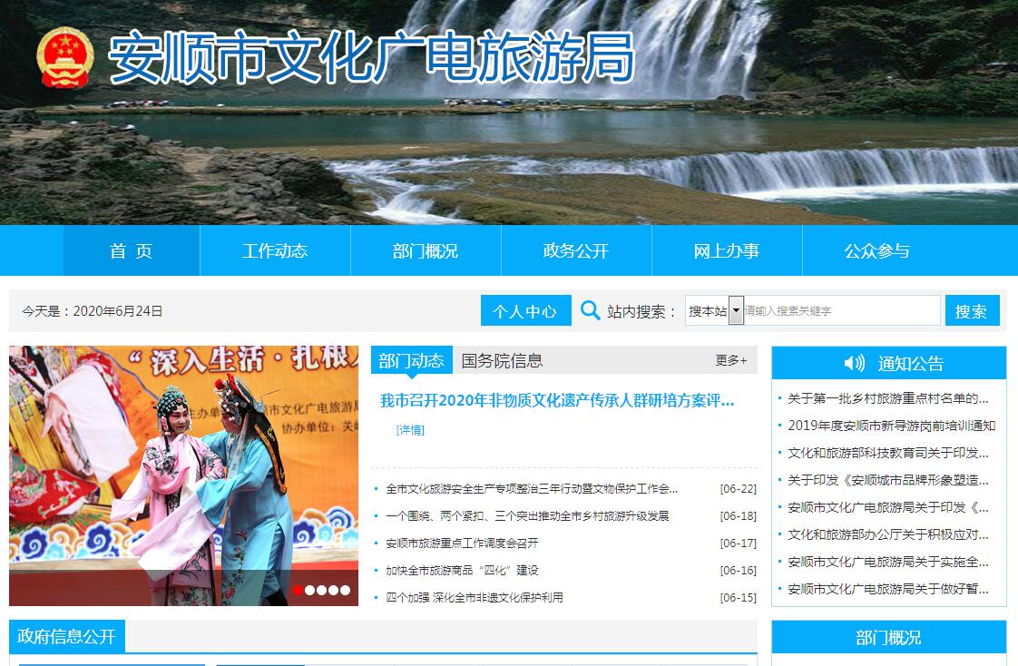 安顺市文化广电旅游局主要职责:(一)组织实施文化广电旅游政策措施,指导、协调、推动文化广播电视旅游发展,拟订发展规划并组织实施,推进文化广电旅游融合发展,推进文化旅游体制机制改革。(二)促进文化旅游整体形象提升,指导、管理、促进文化旅游产业对外交流、宣传、合作和推广工作,制定旅游市场开发计划并组织实施,统筹推进全域旅游。(三)指导、管理文艺事业,指导艺术创作生产,扶持体现社会主义核心价值观、具有导向性代表性示范性的文艺作品,推动各门类艺术、各艺术品种发展。(四)负责公共文化旅游事业发展,推进公共文化服务体系建设和旅游公共服务建设,深入实施文化惠民工程,统筹推进基本公共文化服务标准化、均等化。(五)统筹推进文化广电旅游科技创新发展,推进文化广电旅游行业信息化、标准化建设。(六)负责非物质文化遗产保护,推动非物质文化遗产的保护、传承、普及、弘扬和振兴。(七)统筹规划文化旅游产业,组织实施文化旅游资源普查、挖掘、保护和利用工作,促进文化旅游产业发展。(八)统筹推进生态旅游、红色旅游、乡村文化旅游发展,推进文化旅游扶贫开发工作,贯彻落实乡村振兴战略、“多彩贵州公园省”和“中国温泉省”建设的相关工作。(九)指导文化广电旅游市场发展,对文化广电旅游市场经营行业进行监管,推进文化广电旅游行业信用体系建设,依法依规规范文化广电旅游市场。(十)指导全市文化旅游市场综合执法,组织查处全市性、跨区域文化、文物、新闻出版、广播电视、电影、旅游等市场的违法行为,督查督办大案要案,规范市场秩序。(十一)拟订文物和博物馆事业发展规划,协调和指导文物保护、博物馆和考古工作,推进文物和博物馆公共服务体系建设。负责文物和博物馆监督管理。推进文物和博物馆信息化、标准化建设和文物保护科技成果转化。(十二)贯彻落实广播电视领域事业发展政策和产业规划,负责组织实施公共服务公益工程和公益活动,指导、监督广播电视基础设施建设,扶助老少边贫地区广播电视建设和发展。(十三)负责对各类广播电视机构进行业务指导和行业监管,会同有关部门对网络视听节目服务机构进行管理。实施依法设定的行政许可,协调查处广播电视违法行为。(十四)指导电视剧的制作、播出,监督管理、审查广播电视节目、网络视听节目的内容和质量。指导、监管广播电视广告播放。(十五)指导协调广播电视重大宣传活动,指导实施广播电视节目评价工作。(十六)协调推进广播电视与新媒体新技术新业态融合发展,推进广电网与电信网、互联网三网融合。承接推进中国(贵州)智慧广电综合试验区有关工作。(十七)组织实施广播电视和网络视听科技发展规划、政策及行业技术标准并监督检查。负责对广播电视节目传输覆盖、监测和安全播出进行监管,推进应急广播体系建设。指导协调广播电视系统安全和保卫工作。(十八)结合部门职责,做好军民融合、扶贫开发等相关工作;加大科技投入,提高科技创新能力,为推进创新驱动发展提供保障;负责本部门、本行业领域的安全生产和消防安全工作;按规定做好大数据发展应用和政务数据资源管理相关工作,依法促进部门政务数据资源管理、共享和开放。(十九)完成市委、市政府、省文化和旅游厅、省广播电视局、省文物局交办的其他任务。