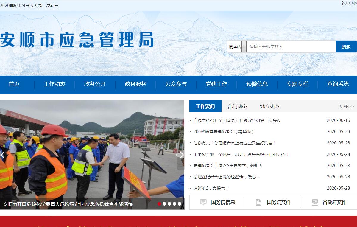 安顺市应急管理局主要职责:(一)负责全市应急管理工作,指导各县(区)各部门应对安全生产类、自然灾害类等突发事件和综合防灾减灾救灾工作。负责全市安全生产综合监督管理和工矿商贸行业安全生产监督管理工作(煤矿除外,下同)。(二)拟订全市应急管理、安全生产等政策措施,组织编制全市应急体系建设、安全生产和综合防灾减灾规划,贯彻执行地方性法规、规章、相关规程和标准。(三)指导全市应急预案体系建设,建立完善事故灾难和自然灾害分级应对制度,组织编制安顺市总体应急预案和安全生产类、自然灾害类专项预案并组织实施,综合协调应急预案衔接工作,组织开展预案演练,推动应急避难设施建设。(四)按要求牵头建立与国家和省应急管理信息系统相衔接的、全市统一的应急管理信息系统,负责信息传输渠道的规划和布局,建立监测预警和灾情报告制度,健全自然灾害信息资源获取和共享机制,依法统一发布灾情。(五)组织指导协调全市安全生产类、自然灾害类等突发事件应急救援,承担市政府应对重大灾害指挥部工作,综合研判突发事件发展态势并提出应对建议,协助市委、市政府指定的负责同志组织重大灾害应急处置工作。(六)统一协调指挥全市各类应急专业队伍,建立应急协调联动机制,推进指挥平台对接,衔接驻安解放军和武警部队参与应急救援工作。(七)统筹全市应急救援力量建设,按规定负责消防、森林和草原火灾扑救、抗洪抢险、地震和地质灾害救援、生产安全事故救援等专业应急力量建设,按规定管理市级综合性应急救援队伍,指导各县区和社会应急救援力量建设。(八)按规定负责全市消防工作,组织指导消防监督、火灾预防、火灾扑救等工作。(九)指导协调森林和草原火灾、水旱灾害、地震和地质灾害等防治工作,负责自然灾害综合监测预警工作,指导开展自然灾害综合风险评估工作;承担市防汛抗旱指挥部和市森林防火指挥部日常工作。(十)组织协调全市灾害救助工作;组织指导灾情核查、损失评估、救灾捐赠工作,管理、分配上级下拨和市级救灾款物并监督使用;承担市减灾委员会日常工作。(十一)依法行使全市安全生产综合监督管理职权。指导协调、监督检查市级有关部门和各县区安全生产工作;承担市安全生产委员会日常工作。(十二)按照分级、属地原则,依法监督检查工矿商贸生产经营单位贯彻执行安全生产法规规章情况及其安全生产条件、设备(特种设备除外)、材料、劳动防护用品的安全生产管理工作。依法组织并监督实施安全生产准入制度。负责危险化学品安全监督管理综合工作;负责烟花爆竹安全生产监督管理工作。(十三)依法组织指导开展生产安全事故调查处理,监督事故查处和责任追究落实情况;组织开展自然灾害类突发事件的调查评估工作。(十四)拟订全市应急物资储备和应急救援装备规划并组织实施,会同市发展改革委(市粮食局)等部门建立健全粮食等应急物资信息平台和调拨制度,在救灾时统一调度。(十五)负责应急管理、安全生产和综合防灾减灾宣传教育和培训工作,组织指导应急管理、安全生产和综合防灾减灾的科学技术规划研究、推广应用和信息化建设工作。(十六)根据市委、市政府和省应急管理厅、省地震局的决策部署,开展应急管理方面交流合作和应急救援。(十七)结合部门职责,做好军民融合、扶贫开发等相关工作;加大科技投入,提高科技创新能力,为推进创新驱动发展提供保障;按规定做好大数据发展应用和政务数据资源管理相关工作,依法促进部门政务数据资源规范管理、共享和开放。(十八)完成市委、市政府和省应急管理厅、省地震局交办的其他任务。