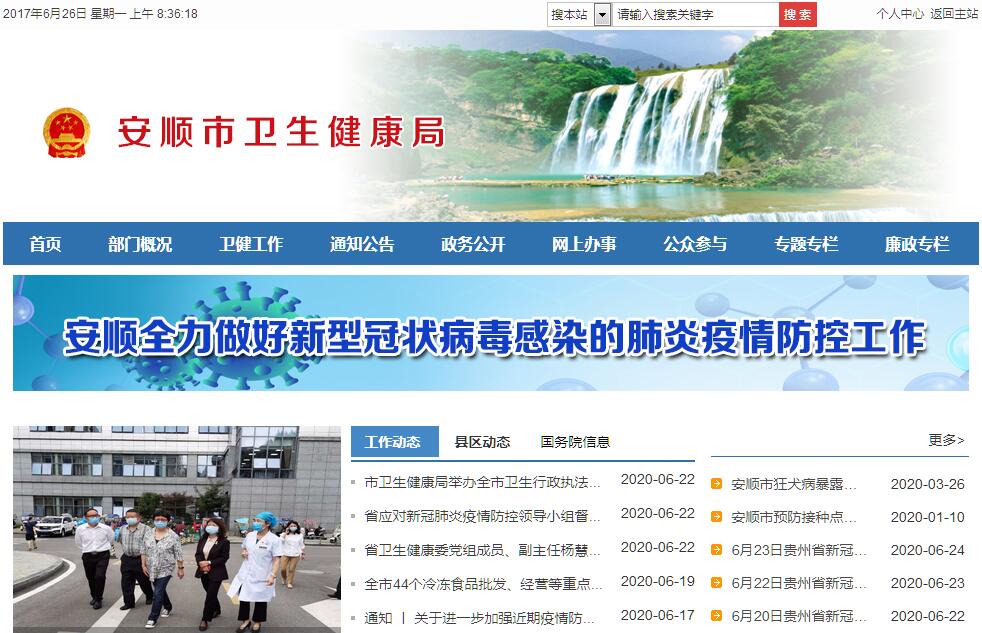安顺市卫生健康局主要职责:(一)贯彻执行卫生健康工作法律法规及卫生健康事业发展地方性法规、规章,组织实施政策规划、标准和技术规范。根据省卫生健康资源配置规划,编制我市卫生健康规划并组织实施。制定并组织实施推进卫生健康基本公共服务均等化、普惠化、便捷化和公共资源向基层延伸等政策措施。(二)协调推进深化医药卫生体制改革,贯彻落实深化医药卫生体制改革重大方针、政策、措施。组织实施深化公立医院综合改革,推进管办分离,健全现代医院管理制度,制定并组织实施推动卫生健康公共服务提供主体多元化、提供方式多样化的政策措施,提出医疗服务和药品价格政策的建议。(三)拟订并组织实施疾病预防控制规划、免疫规划以及严重危害人民健康公共卫生问题的干预措施。执行检疫传染病和监测传染病目录。负责卫生应急工作,组织实施突发公共卫生事件的预防控制和各类突发公共事件的医疗卫生救援。负责爱国卫生工作,组织实施卫生创建活动。(四)协调落实应对人口老龄化政策措施,负责推进老年健康服务体系建设和医养结合工作。(五)贯彻落实国家药物政策和国家基本药物制度,开展药品使用监测、临床综合评价和短缺药品预警,提出基本药物价格政策的建议,贯彻实施国家基本药物目录。组织开展食品安全风险监测评估,贯彻执行食品安全标准。(六)负责职责范围内的职业卫生、放射卫生、环境卫生、学校卫生、公共场所卫生、饮用水卫生等公共卫生的监督管理,负责传染病防治监督,健全卫生健康综合监督体系。(七)监督实施医疗机构、医疗服务行业管理办法,建立医疗服务评价和监督管理体系。会同有关部门组织实施卫生健康专业技术人员资格标准。组织实施医疗服务规范、标准和卫生健康专业技术人员执业规则、服务规范。(八)负责计划生育管理和服务工作,开展人口监测预警,研究提出全市人口与家庭发展相关政策建议并组织实施,执行计划生育政策。(九)指导推动地方卫生健康工作和基层医疗卫生、妇幼健康服务体系、全科医生队伍建设。推进卫生健康科技创新发展。(十)负责社会办医疗机构的规划和监督管理的有关工作。(十一)负责市级保健对象的医疗保健工作,负责重要会议与重大活动的医疗卫生保障工作。(十二)贯彻实施促进中医药事业发展的法律法规和地方规章,拟订和实施中医药发展规划,管理中医药工作。(十三)结合部门职责,做好军民融合、扶贫开发等相关工作;加大科技投入,提高科技创新能力,为推进创新驱动发展提供保障;负责本部门、本行业领域的安全生产和消防安全工作;按规定做好大数据发展应用和政务数据资源管理相关工作,依法促进部门政务数据资源规范管理、共享和开放。(十四)提出加强全市医院党建工作的意见和建议,对医院党建工作质量进行评价。(十五)指导市计划生育协会的业务工作。(十六)完成市委、市政府和省卫生健康委员会交办的工作任务。