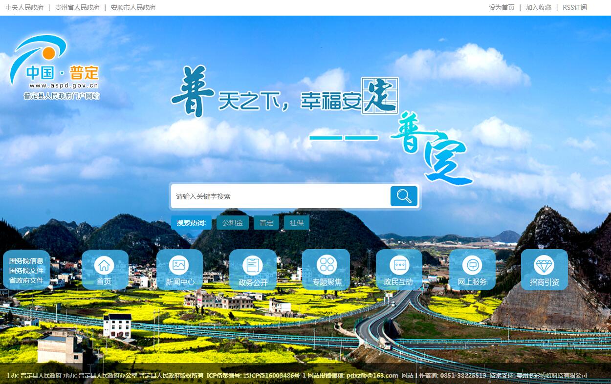 普定县,隶属贵州省安顺市,位于贵州省中部偏西,东与安顺市西秀区、开发区、平坝区比邻,南与镇宁县、六枝特区相接,西靠六枝特区,北抵织金县。地处素有“黔之腹,滇之喉”之称的黔中腹地,介于东经105°27' 49"-105°58' 51",北纬26°26' 36"-26°31' 42"之间,辖区东西长51.4公里,南北宽40公里,总面积1079.93平方公里。普定县属于亚热带季风湿润气候,季风交替明显,全年气候温和。农业气候具有春长、夏短、秋早、冬暖的特点。截至2016年,普定县辖3个街道、6个镇、3个民族乡,县政府驻定南街道。2017年,普定县总人口数505414人。普定县是一个多民族聚居地区,汉族为全县总人口的80%左右,苗族、布依族是境内的主要少数民族。普定“取普里底定之义也”。普里为部落名。普定之名在历史上出现较早,在建置上与今安顺市密切相联。古为牂牁夜郎国地,有彝族居住。 唐朝贞观四年(630年),置琰州,领始安等县,始安县治西堡(今普定马场),是今普定境内建立的第一个建制县。1949年属安顺专区,今属安顺市,县建制沿革一直未变。境内公路东西纵横,南北延伸,距黄果树机场20公里、贵阳龙洞堡机场110公里,贵昆铁路、珠六复线、黄织铁路和省道安(顺)织(金)公路穿境而过。2017年,普定县完成地区生产总值(GDP)113.00亿元。2018年9月25日,获得商务部“2018年电子商务进农村综合示范县”荣誉称号。2019年4月24日,贵州省人民政府正式批准普定县退出贫困县序列。