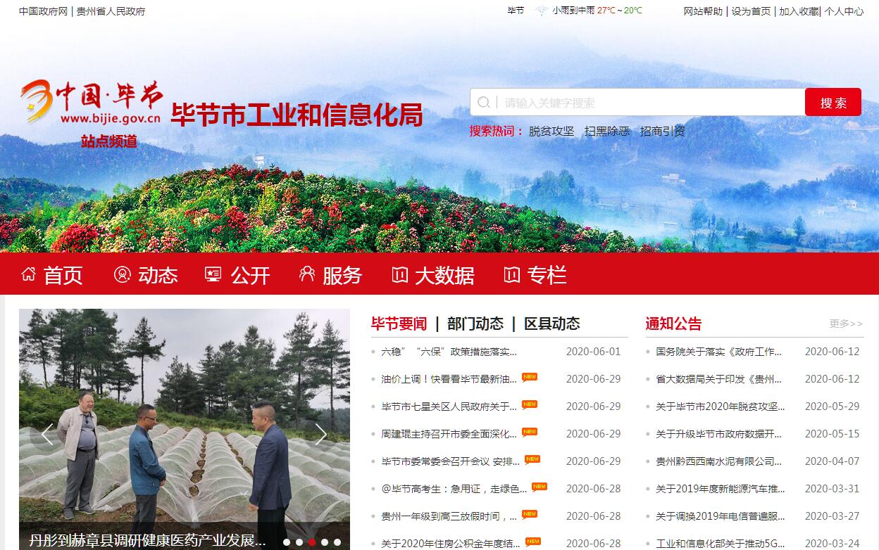 毕节市工业和信息化局(毕节市大数据局)主要职责:(一)承担推进新型工业化的职责,拟订新型工业化发展战略和政策,研究并协调解决新型工业化进程中的重大问题;拟订并组织实施工业发展规划,推进产业结构调整和优化升级,推进高新技术与传统工业改造结合。(二)承担推进工业化与信息化融合发展的职责,协调建设中的重大问题;拟订工业化与信息化融合发展规划、计划和政策并组织实施;推动工业领域信息资源的开发、利用、共享及互联互通;指导协调工业企业信息化发展和信息化应用,运用新一代信息技术改造和提升传统产业。(三)负责研究拟定全市信息化建设、大数据基础设施、大数据发展规划、政策措施和评价体系并组织实施。开展大数据发展应用政策研究,提出推广应用、优化产业布局、产业结构的政策建议;负责统筹推进全市信息化发展和大数据融合应用;指导协调推进大数据与“四个融合发展”(与实体经济、社会治理、民生服务、乡村振兴融合发展);统筹协调通信业发展;促进通信、广播电视和计算机网络融合;负责信息化应急协调工作;推动社会数据汇聚融合、互联互通;统筹推进大数据安全体系建设和安全保障工作;负责数据中心规划建设与集约利用;监督管理全市网络和信息服务市场;负责全市大数据相关产业发展和行业管理,推进数字产业化、产业数字化发展。承担软件和信息服务行业管理工作;推动大数据、信息化等方面的新技术、新产品、新业态发展和应用;按规定做好政务数据资源管理相关工作,依法促进部门数据资源规范管理、共享和开放;统筹协调产业发展中的重大问题并提出对策建议;指导行业技术创新和技术进步,促进科研成果产业化,推动大数据产学研用结合;联系在毕电信运营企业有关工作。(四)拟订工业规划、计划和产业政策并组织实施,提出优化产业布局、结构的政策建议; 贯彻执行相关法律法规,组织实施工业行业有关技术规范和标准;组织开展工业、工业化和信息化融合、大数据领域对外交流与合作,组织相关企业参与重大交流合作活动;指导工业和信息化、大数据领域行业协会、学会、联盟机构工作。(五)监测分析工业经济运行态势并发布相关信息,进行预测预警和信息引导;协调解决行业运行发展中的有关问题并提出政策建议;负责做好工业应急管理、产业安全和国防动员有关工作。(六)负责提出工业、工业化与信息化融合、大数据发展领域固定资产投资规模及方向(含利用外资和境外投资)、申报中央及省财政性建设资金,按照规定权限审批、备案和核准固定资产投资项目;承担市级财政工业和信息化、大数据发展专项资金管理和安排工作,拟订年度计划报批后组织实施;指导工业和信息化、大数据产业发展基金建设并按规定承担有关管理工作;承担工业和信息化、大数据企业固定资产投资减免税审核工作;指导工业和信息化、大数据领域投资项目有关设备招标工作。(七)拟订高技术产业中涉及生物医药、新材料、电子信息制造业等的规划、政策并组织实施,组织开展国家、省、市重大技术攻关项目及有关国家、省、市科技重大专项,组织开展工业和信息化新产品、新技术鉴定工作;拟订市级财政技术创新资金年度计划并组织实施;指导工业和信息化领域技术创新和技术进步,推进产学研结合,促进科研成果产业化;承担企业技术中心、制造业创新中心和技术创新示范企业等技术创新体系培育工作。(八)负责工业行业(除炼油、煤制燃料和燃料乙醇)管理;承担振兴装备制造业组织协调的职责,推进重大技术装备国产化,指导引进重大技术装备的消化创新;推进工业领域生产性服务业的发展;负责盐业行业管理工作;指导协调烟草工业管理工作;承担原材料行业管理工作,提出全市重要矿产资源保障的政策措施,协调解决原材料工业生产要素的供应保障;指导行业质量管理和品牌建设工作;依法开展民爆物品生产销售安全的监管;负责督促相关行业加强安全生产管理,推进相关行业安全生产规程、标准的贯彻落实。(九)组织拟订工业园区发展规划及政策措施;负责工业园区规划布局;监测分析工业园区发展情况,指导推进工业园区产业定位和工业园区发展;协调解决工业园区发展中的重大问题并提出政策建议。(十)拟订促进大中小企业融通发展政策措施并组织实施;负责中小企业、非公有制经济和城镇集体经济的指导、综合协调工作,会同有关部门拟订促进中小企业发展、非公有制经济发展和城镇集体经济发展的相关政策和措施,协调解决重大问题;按规定管理用于支持中小企业发展的各类财政性资金。(十一)拟订工业和信息化年度节能计划、资源综合利用和清洁生产的规划并组织实施;指导工业、信息化和大数据产业绿色发展;监督管理相关行业资源综合利用工作;组织协调工业信息化领域节能和综合利用新产品、新技术、新设备、新材料的推广应用;拟订工业、信息化和大数据节能监察计划并组织实施;协调散装水泥生产发展和推广应用工作。 (十二)负责工业和信息化、大数据人才队伍建设工作。拟订并组织实施工业和信息化、大数据领域人才发展规划,组织协调全市工业和信息化、大数据人才教育有关工作。(十三)结合部门职责,做好扶贫开发等相关工作。加大科技投入,提高科技创新能力,为推进创新驱动发