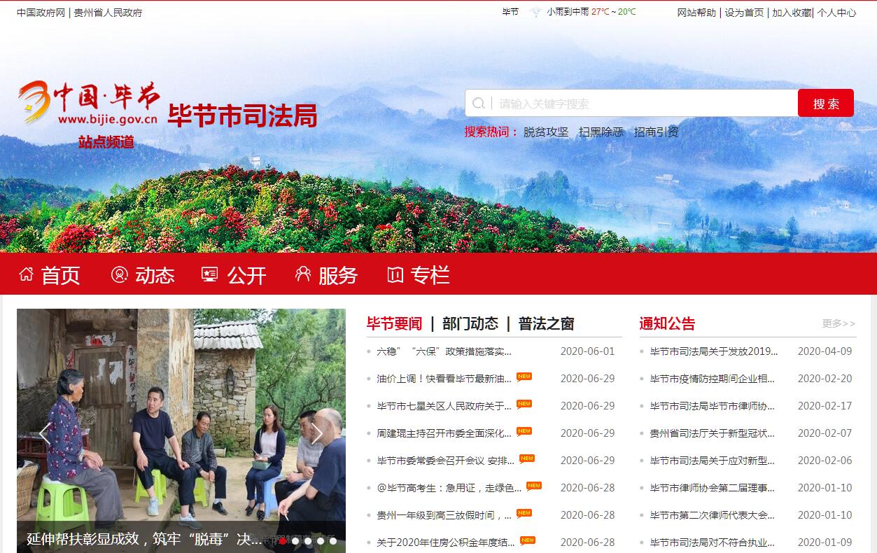 毕节市司法局主要职责:1、贯彻落实党和国家关于司法行政工作的方针政策、法律法规并承担相应责任;拟定全市司法行政工作的中长期发展规划、年度计划并组织实施。2、承担全市普法和依法治理工作领导小组的日常工作,拟定全市法制宣传教育工作规划并组织实施;指导全市法制宣传和依法治理工作。3、领导、监督毕节强制隔离戒毒所的工作。4、指导、监督、管理全市的律师工作、公证工作、法律援助工作并承担相应责任。5、指导、监督全市基层司法所建设和人民调解、基层法律服务工作。6、指导、监督社区矫正工作和刑满释放、解除劳教人员的帮教安置工作。7、组织实施全市国家司法考试工作。8、指导、管理全市司法鉴定机构登记工作。9、负责全市司法行政系统的执法监督检查、行政复议、应诉等法制工作和组织、指导全市司法行政调查研究工作。10、负责全市司法行政系统警车、服装等装备的管理工作,指导、监督全市司法行政系统的计划财务和基础设施建设工作。11、指导、监督全市司法行政队伍建设和思想作风、工作作风建设,负责全市司法行政系统的警务管理和警务督察工作; 按干部管理权限负责相关干部管理工作,协助各县(区)管理司法局的领导干部。12、承办毕节市人民政府和省司法厅交办的其他事项。13、贯彻执行《中华人民共和国禁毒法》及有关强制隔离戒毒工作方针政策和法律、法规,负责制定、实施年度工作计划。14、依法实施对强制戒毒人员的收治、管理、教育、戒毒治疗,组织开展生产劳动和职业技能培训等工作。15、负责所政管理工作。负责所情分析,所内案件预防工作;负责场所安全防范工作,预防和处置突发事件。16、负责强制隔离戒毒人员的教育矫治工作。组织戒毒人员开展思想教育、文化教育和职业技术教育,开展戒毒人的心理矫治工作,负责社会帮教和解除强制隔离戒毒人员的帮教等工作。17、负责强制隔离戒毒人员生活卫生管理和戒毒治疗工作,开展卫生防疫、防病治病等工作。18、负责强制隔离戒毒人员的习艺生产劳动和生产工作。提供生产劳动和技能培训岗位,组织实施生产计划,负责安全生产管理、质量管理、环境保护等工作。19、负责场所基本建设、财务管理、装备管理、资产管理和信息化建设工作。20、负责党的建设和队伍建设工作。负责组织、宣传、奖惩、人事警务、工资管理、教育培训、工青妇等工作;按照管理权限任免干部;负责社会保险和离退休人员服务管理等工作。21、完成上级交办的其他事项。