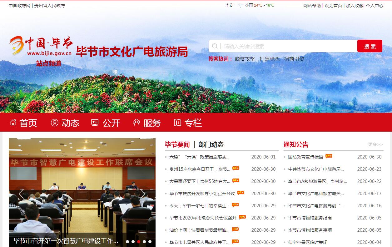 毕节市文化广电旅游局主要职责:一、研究拟订文化广电旅游政策措施,加强广播电视阵地管理,把握正确的舆论导向和创作导向。二、统筹规划文化广电事业和旅游业发展,拟订发展规划并组织实施,推进文化广电旅游融合发展,推进文化广电旅游体制机制改革。三、管理重大文化活动,指导重点文化设施建设,组织文化旅游整体形象推广,促进文化广电旅游产业对外合作和国际国内市场推广,制订旅游市场开发战略并组织实施,统筹推进全域旅游。四、指导、管理文艺事业,指导艺术创作生产,扶持体现社会主义核心价值观、具有导向性代表性示范性的文艺作品,推动各门类艺术、各艺术品种发展。五、负责公共文化事业发展,推进公共文化服务体系建设和旅游公共服务建设,深入实施文化惠民工程,统筹推进基本公共文化服务标准化、均等化。六、统筹推进文化广电旅游科技创新发展,推进文化广电旅游行业信息化、标准化建设。七、负责非物质文化遗产保护,推动非物质文化遗产的保护、传承、普及、弘扬和振兴。八、拟订文物和博物馆事业发展规划,协调和指导文物保护、博物馆和考古工作,推进文物和博物馆公共服务体系建设。负责文物和博物馆监督管理。推进文物和博物馆信息化、标准化建设和文物保护科技成果转化。九、统筹规划文化广电旅游产业,组织实施文化广电旅游资源普查、挖掘、保护和利用工作,促进文化广电旅游产业发展。十、统筹推进生态旅游、红色旅游、乡村文化旅游发展,推进文化旅游扶贫开发工作,参与乡村振兴战略、“多彩贵州公园省”和“中国温泉省”建设的相关工作。十一、指导文化广电旅游市场发展,对文化广电旅游市场经营进行行业监管,推进文化广电旅游行业信用体系建设,依法规范文化广电旅游市场。十二、指导全市文化市场综合执法,组织查处全市性、跨区域文化、文物、出版、广播电视、电影、旅游等市场的违法行为,督查督办大案要案,维护市场秩序。十三、指导、管理文化广电旅游交流、合作和宣传、推广工作,组织大型文化旅游对外交流活动。十四、负责组织实施公共服务公益工程和公益活动,指导、监督广播电视基础设施建设,扶助老少边贫地区广播电视建设和发展。十五、负责对各类广播电视机构进行业务指导和行业监管,会同有关部门对网络视听节目服务机构进行管理。实施依法规定的行政许可。十六、监督管理、审查广播电视节目、网络视听节目的内容和质量。指导、监管广播电视广告播放。十七、负责推进广播电视与新媒体新科技新业态融合发展,推进广电网与电信网、互联网三网融合。十八、拟订广播电视和网络视听科技发展规划、政策,并按行业技术标准组织实施和监督检查。负责对广播电视节目传输覆盖、监测和安全播出进行监管,推进应急广播体系建设。指导协调广播电视系统安全和保卫工作。十九、结合部门职责,做好军民融合、扶贫开发等相关工作;加大科技投入,提高科技创新能力,为推进创新驱动发展提供保障;负责本部门、本行业领域的安全生产和消防安全工作;按规定做好大数据发展应用和政务数据资源管理相关工作,依法促进部门政务数据资源规范管理、共享和开放。二十、完成市委、市政府、省文化和旅游厅、省广播电视局交办的其他任务。