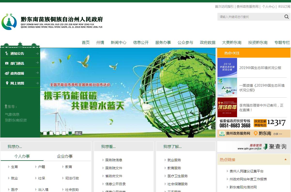 黔东南苗族侗族自治州位于贵州省东南部,地跨东经107°17′20″—109°35′24″;北纬25°19′20″—27°31′40″。东与湖南省怀化地区毗邻,南和广西壮族自治区柳州、河池地区接壤,西连黔南布依族自治州,北抵遵义、铜仁两市。全境东西宽220公里,南北长240公里,总面积30282.34平方公里,占全省总面积的17.2%。自治州成立于1956年7月23日,州府所在地设于凯里市。全州辖凯里市和麻江、丹寨、黄平、施秉、镇远、岑巩、三穗、天柱、锦屏、黎平、从江、榕江、雷山、台江、剑河15个县,凯里、炉碧、金钟、洛贯、黔东、台江、三穗、岑巩、锦屏、黎平10个省级经济开发区。境内居住着苗、侗、汉、布依、水、瑶、壮、土家等46个民族,2019年末常住人口355.20万人,户籍人口484.73万人,少数民族人口占总户籍人口的81.5%,其中苗族人口占43.3%,侗族人口占30.4%。自治州境内山地纵横,峰峦连绵,沟壑遍布,地形地貌奇异复杂,景象万千。全州地势西高东低,最高海拔2178米,最低海拔137米;属亚热带湿润季风气候,特点为冬无严寒,夏无酷暑,四季分明,雨水充沛,立体气候明显,年平均气温14.6-18.5℃,年降雨量1010.4-1367.5毫米,年无霜期273-327天,相对湿度为78-83%。黔东南森林资源丰富,是我国南方的重点集体林区之一。境内群山叠翠、林木葱笼,森林资源丰富,有“杉乡”、“林海”之称。黔东南是全国重点林区之一,也是贵州省的主要用材林基地,全省10个林业重点县,有8个在黔东南。根据第四次森林资源规划设计调查,全州森林面积达200.6 万公顷,活立木蓄积量为 1.69亿立方米,为全省之冠。州内天然林面积约占林业用地面积的35.99%,天然林主要是常绿阔叶林、常绿落叶混交林和针阔混交林。2018年全州森林覆盖率67.67%。黔东南水能资源丰富,开发条件优越。全州水能蕴藏量为332万千瓦,技术可开发量270万千瓦,河流天然落差较大,开发条件优越。黔东南地处长江、珠江上游,国家实施“天保”工程,属长江流域、珠江防护林保护区范围。境内水系发达,河网稠密,有983条河流,多年平均年径流量192.1亿立方米。以清水江、舞阳河、都柳江为主干,呈树枝状展布于各地,河流分属两个水系,苗岭以北的清水江、舞阳河属长江流域的沅江水系,苗岭以南的都柳江属珠江流域的柳江水系。境内长江流域面积21535平方公里,珠江流域面积8802平方公里,是长江、珠江上游地区的重要生态屏障,是西部大开发生态建设的重点区域。州境内有大小河流983条,其中50平方公里以上河流225条,以清水江、舞阳河、都柳江为主干,呈树枝状展布于各地。河流分属两个水系,苗岭以北的清水江、舞阳河属长江流域的沅江水系,苗岭以南的都柳江属珠江流域的柳江水系。清水江发源于都匀市杨柳街镇谷江村西北的斗蓬山,自西向东流经州境内丹寨、麻江、凯里、黄平、施秉、台江、剑河、锦屏、天柱9个县市,州境河道长376公里,流域面积14769平方公里,于天柱县瓮洞镇流入湖南境内。舞阳河发源于瓮安县长林乡,自西向东流经黄平、施秉、镇远、岑巩4县,州境河道长166公里,流域面积为5106平方公里,于岑巩县新兴县城流入铜仁市玉屏县。都柳江发源于黔南州独山县林场北面拉林,自西向东南流经榕江、从江2县,州境河道长141公里,流域面积8802平方公里,于从江县丙妹镇流入广西省境内。黔东南州河流多为山区雨源性河流,河谷束放相间,水流湍急,水力资源丰富。黔东南生物种类繁多,堪称祖国的绿色宝库。州内有各种植物3623种,分属214科1050属。其中野生植物资源194科947属3300余种,在种子植物中,有中国特有种45属,占全国特有属的2.97%。其中,国家重点保护野生植物红豆杉、珙桐、钟萼木、异形玉叶金花、篦子三尖杉、厚朴、香樟、秃杉、鹅掌楸等42种;有野生动物有脊椎动物5纲31目104科557种。其中,鸟纲13目37科217种,哺乳纲8目25科96种,鱼纲5目22科130种,爬行纲3目11科69种,两栖纲2目9科45种。其中,有国家一级重点保护野生动物豹、云豹、林麝、白颈长尾雉、中华秋沙鸭等5种;国家二级重点保护野生动物猕猴、斑林狸、黑熊、鬣羚、小天鹅、鸳鸯、蛇雕、褐耳鹰、雀鹰、普通、燕隼、白鹇、白冠长尾雉、红腹锦鸡、东方草鸮、灰林鸮、斑头鸺鹠等40种。黔东南储藏有丰富的矿产资源。全州境内已发现的矿藏有煤、铁、金、汞、锌、铅、锑、铜、磷、石灰石、重晶石、白云石、粘土等矿种58种(含亚矿种),占全省已知137种的42.34%。查明362处,其中能源矿产22处,金属矿产220处,非金属120处。其中重晶石矿资源量居全国同类矿产资源储量之首,玻璃用石英砂岩、锑矿列全省同类矿产资源储量的前三位。黔东南旅游资源丰富,是贵州省的东线旅游区。境内奇山秀水,自然风光迷人,民族风情浓郁,集自然风光、民族风情和人文景观于一体。有以国家级风景名胜区舞阳河和世界自然遗产云台山为代表的山水名胜旅游景区,有以凯里、台江、雷山为代表的苗族风景旅游线,有以黎平、榕江、从江为代表的侗乡民族风情旅游线。有雷山西江、黎平肇兴、锦屏隆里、仰阿莎湖、从江岜沙、施秉杉木河和云台山、黄平浪洞温泉和野洞河、剑河温泉、岑巩龙鳌河、台江翁密河、镇远高过河、麻江下司、黎平会址和肇兴等景点,以及众多的文物古迹、革命历史胜地等,构成了黔东南多姿多彩的旅游景观,加上冬无严寒,夏无酷暑的宜人气候,吸引了大批海内外