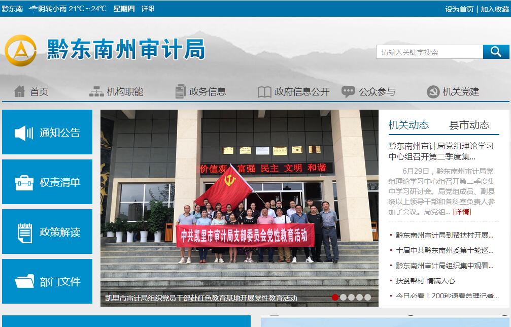 黔东南州审计局主要职责:(一)主管全州审计工作。负责对州财政收支和法律法规规定属于审计监督范围的财务收支的真实、合法和效益进行审计监督,对公共资金、国有资产、国有资源和领导干部履行经济责任情况实行审计全覆盖,对领导干部实行自然资源资产离任审计,对国家、省、州有关重大政策措施贯彻落实情况进行跟踪审计。对审计、专项审计调查和核查社会审计机构相关审计报告的结果承担责任,并负有督促被审计单位整改的责任。(二)贯彻执行审计法律法规和方针政策。参与或起草财政经济及其相关的地方性审计法规和规章草案。制定审计规范性文件并监督执行。制定并组织实施全州审计工作发展规划、年度审计计划。对直接审计、调查和核查事项依法进行审计评价,做出审计决定或提出审计建议。(三)向州政府和省审计厅提出年度州级预算执行和其他财政收支情况的审计结果报告。受州政府委托向州人大常委会提出年度州级预算执行和其他财政收支情况的审计工作报告、审计查出问题整改情况报告。向州委、州政府和省审计厅报告对其他事项的审计和专项审计调查情况及结果。依法向社会公布审计结果。向州委、州政府有关部门、州辖县(市)党委和政府通报审计情况和审计结果。(四)直接进行下列审计,出具审计报告,在法定职权范围内做出审计决定或向有关主管机关提出处理处罚建议,包括国家、省、州有关重大政策措施在全州的贯彻落实情况;州级预算执行情况和其他财政收支;州委和州政府各部门(含直属单位)预算执行情况、决算草案和其他财政收支;县(市)政府预算执行情况、决算草案和其他财政收支,州级财政转移支付资金;使用州级财政资金的事业单位和社会团体的财务收支;州级投资和以州级投资为主的建设项目的预算执行情况和决算,州级重大公共工程项目的资金管理使用和建设运营情况;自然资源管理、污染防治和生态保护与修复情况;州属国有企业和金融机构、州政府规定的州属国有资本占控股或主导地位的企业和金融机构境内外资产、负债和损益;有关社会保障基金、社会捐赠资金和其他基金、资金的财务收支;根据授权审计国际组织和外国政府援助、贷款项目的财务收支;法律法规规定的其他事项。(五)按规定对县(处)级党政主要领导干部及其他单位主要负责人实施经济责任审计和自然资源资产离任审计。(六)组织实施对国家财经法律法规、规章、政策和宏观调控措施执行情况、财政预算管理及国有资产管理使用等与国家财政收支有关的特定事项进行专项审计调查。(七)依法检查审计决定执行情况,督促整改审计查出的问题,依法办理被审计单位对审计决定提请行政复议、行政诉讼或州政府裁决中的有关事项,协助配合有关部门查处相关重大案件。(八)指导和监督内部审计工作,核查社会审计机构对依法属于审计监督对象的单位出具的相关审计报告。(九)执行省委关于省以下审计机关人财物管理改革有关规定,与县(市)级党委和政府共同领导县(市)级审计机关。依法领导和监督下级审计机关的业务。组织下级审计机关实施特定项目的专项审计或审计调查,纠正或责成纠正下级审计机关违反国家规定做出的审计决定。(十)结合部门职责,做好军民融合、扶贫开发等相关工作,加大科技投入,提高科技创新能力,为推进创新驱动发展提供保障;负责本部门、本行业领域的安全生产和消防安全工作。按规定做好大数据发展应用和政务数据资源管理相关工作,依法促进部门政务数据资源管理规范、共享和开放。(十一)完成州委、州政府和省审计厅交办的其他工作任务。