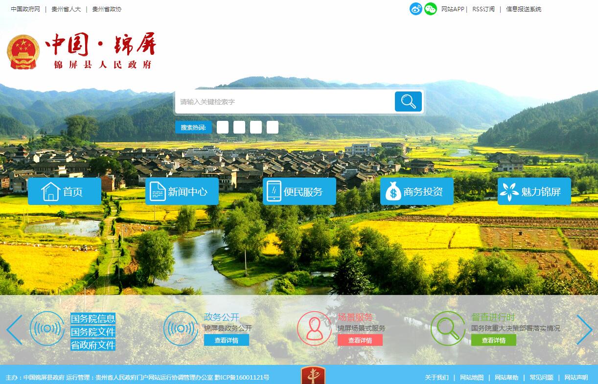 锦屏因青山似锦、秀丽如屏而得名,位于贵州省东南部,黔东南州东部,总面积1597平方公里,辖15个乡镇和1个省级经济开发区,2018年末总户数65394户,总人口236320人,居住有侗、苗、汉等24个民族,少数民族占总人口89.3%,是一个集少数民族文化、木商文化、红色文化、军屯文化于一体的多文化聚集地,是革命老区县、新阶段国家扶贫开发重点县和国家重点生态功能区,是中国早期工人运动领袖、龙华二十四烈士之一龙大道和红军十八师师长龙云的故乡,是中国南方典型集体林区县,贵州省重点林业县,森林面积170万亩,森林覆盖率72.12%。境内林木、青石、水能等资源丰富,林木蓄积量1295万立方米,青石储量1.3亿立方米,水电装机容量118万千瓦。 锦屏县2012年被列为滇桂黔石漠化片区集中连片特殊困难地区县,2018年被列为全国集体林业综合改革试验区和贵州省对深度贫困县的政策支持范围。 锦屏区位优越,是黔东南通往湘、粤、桂的重要门户,三黎高速公路穿境而过,距黎平机场60公里,距贵广高铁从江站110公里,距沪昆高铁三穗站80公里。境内山清水秀,林木、青石、水能等资源丰富,素有“杉木之乡”、“青石之乡”、“水电之乡”美誉。锦屏是尚待开发的人文旅游沃土,是清水江“木商文化”发源地和核心区,保存有10余万件被列入《中国档案文献遗产名录》的锦屏文书,有600余年历史保存完好的明代军事城堡、中国历史文化名村——隆里古城,锦屏三江国家水利风景区,璀璨秀美的三板溪湖,全国最大的乡村集体林场——春蕾森林公园,中国景观村落、被誉为百年民族环保第一村——文斗苗寨,国家生态家园示范村——雷屯等。近年来,锦屏县按照“诚信和谐,创新奋进”的新时代锦屏精神,充分发挥自身优势,积极抢抓机遇,深入实施主基调主战略,坚持以脱贫攻坚统揽经济社会发展全局,围绕打造“中国山地有机生活体验第一县”和“国内外知名木商文化旅游目的地”。 全力推进新型工业化、城镇化、信息化和农业现代化,经济社会实现持续健康发展。2019年,全县地区生产总值完成56.59亿元,同比增长10.5%,居全州第5位。其中一二三产分别完成9.88亿元、22.39亿元、24.31亿元, 同比分别增长5.8%、15.8%和7.3%;一般公共预算收入完成2.08亿元,同比增长0.9%;规模以上工业增加值完成9.7亿元,同比增长15.3%;500万元以上固定资产投资完成19.34亿元,同比增长4.7%;城镇、农村居民人均可支配收入分别达31537元、9466元,同比分别增长9%和11.1%,增速分别居全州第1位和第3位;财政总收入完成4.74亿元,同比增长4.6%;税收收入完成4.26亿元,同比增长5.1%;全县金融机构存、贷款余额分别为74.48亿元、62.76亿元,同比分别增长6.3%和10.2%。迈进新时代,锦屏县将深入贯彻创新、协调、绿色、开放、共享发展理念,充分用好生态环境和民族文化两个“宝贝”,紧扣“夜郎遗珠、有机锦屏”战略定位和乡村振兴发展目标,全面推进大扶贫、大数据、大生态、大健康、大旅游、大农业六大战略行动,更加突出产业发展、城乡建设、全域旅游三大板块,统筹推进经济建设、政治建设、文化建设、社会建设和生态文明建设,确保同步全面建成小康社会。