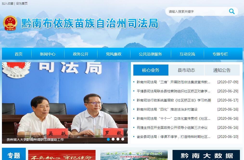 黔南州司法局主要职责:一、承担研究全面依法治国、依法治省决策部署在我州的贯彻落实,组织开展全面依法治州重大问题的政策研究,协调有关方面提出全面依法治州中长期规划建议,负责党中央全面依法治国、省委全面依法治省、州委全面依法治州重大决策部署贯彻落实及督察督办工作。二、贯彻执行司法行政工作的方针政策,制定全州司法行政工作的中长期发展规划和年度计划并组织实施。三、承担统筹规划立法责任。协调有关方面提出立法规划和年度立法工作计划的建议,加强对部门立法计划落实情况的跟踪了解、组织协调和督促指导,研究提出立法与改革决策相衔接的意见、措施。负责面向社会征集法规规章制定项目建议。四、组织或参与有关部门起草有关地方性法规、政府规章草案。负责审查、修改州人民政府各工作部门起草的地方性法规、政府规章草案。承办各部门报送州政府的法规规章草案合法性审核工作。办理州政府规章上报备案工作。负责立法协调。五、承办州政府规章的解释、立法后评估工作。负责协调解决各县(市)、各部门在规章实施中出现的争议及问题。承办州政府规章编纂工作,组织翻译、审定州政府规章外文正式译本。组织开展规章清理工作。六、承担统筹推进法治政府建设的责任。指导、监督州政府各部门、各县(市)及乡(镇)政府依法行政工作,负责依法行政相关政策研究和情况交流,提出推进依法行政的具体措施和工作建议。负责综合协调行政执法,协调解决部门之间有关行政执法争议,对行政执法人员持证执法情况进行监督管理。承担推进行政执法体制改革有关工作,推进严格规范公正文明执法。负责州人民政府行政复议工作,承担州人民政府行政复议和行政应诉、行政赔偿事项,指导、监督全州行政复议、行政应诉和行政赔偿工作。七、负责州人民政府及州人民政府办公室、直属特设机构、直属机构行政规范性文件出台前的合法性审核工作。负责州人民政府各工作部门、直属特设机构、直属机构和各县(市)人民政府行政规范性文件备案审查工作。办理州人民政府行政规范性文件上报备案工作。指导全州行政规范性文件监督管理工作。组织开展行政规范性文件清理工作。八、负责州人民政府法律顾问工作,负责采购社会法律服务及外聘法律顾问的管理工作。参与州人民政府重大项目决策论证,为州人民政府重大经济和社会管理活动提供法律咨询、法律审核和法律服务。承办州人民政府作为民事主体涉及的有关法律事务。九、承担统筹规划法治社会建设责任,负责拟订全州法治宣传教育规划,组织实施普法宣传工作、对外法治宣传。推动人民参与和促进法治建设。指导依法治理和法治创建工作。指导调解工作和人员陪审员、人民监督员选任管理工作,推进司法所建设。十、负责指导、管理全州社区矫正工作。指导刑满释放人员帮教安置工作。十一、领导都匀强制隔离戒毒所管理工作。指导、监督强制隔离戒毒执行和戒毒康复工作。对社区戒毒和社区康复工作提供指导、支持和协助。十二、负责拟定公共法律服务体系建设规划并组织实施,统筹布局城乡、区域法律服务资源。指导和监督律师、法律援助、司法鉴定、公证、仲裁、基层法律服务管理工作。十三、负责组织实施全州国家统一法律职业资格考试工作。负责全州国家统一法律职业资格和证书管理相关工作。制定规划并组织实施法律职业人员业务培训工作,指导政府行政执法队伍建设。十四、负责本系统警务装备管理工作。指导、监督各县(市)财务、装备、设施、场所等保障工作。十五、制定全州司法行政队伍建设规划,负责本系统队伍建设。负责全州司法行政系统的警务、入警培训及申报授衔工作。负责司法行政系统警务督察工作。协助县(市)管理司法局领导干部,按干部管理权限负责相关干部管理工作。负责管理局机关和都匀强制隔离戒毒所的机构编制、干部人事、劳动工资。十六、结合部门职责,做好脱贫攻坚等相关重点工作。负责本部门、本行业领域的安全生产和消防安全工作。按规定做好大数据发展应用和政务数据资源管理相关工作。十七、承办州委、州政府和省司法厅交办的其他任务。