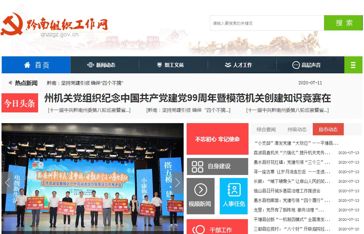 | 网站简介: 黔南组织工作网(以下简称“黔南组织工作网”)”是在中共黔南州委组织部的关怀和指导下,各党政部门共同建设和发展起来的党建宣传网站。黔南组织工作网于2016年12月开始进行全新改版,2017年1月开始试运行,由中共黔南州委党的领导小组办公室主办,黔南州委党建办负责具体的建设管理工作。黔南组织工作网是黔南州各级党委、党组宣传党的建设工作的主要平台,也是各党政部门与公众联络和交流的重要窗口。 |