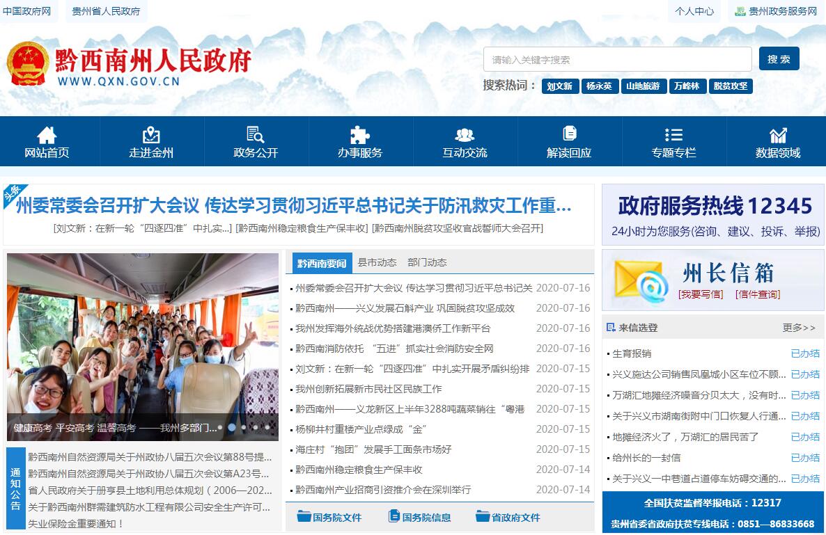 黔西南布依族苗族自治州,首府驻兴义市,是贵州的9个地级行政区之一,位于云南、广西、贵州三省(区)结合部。贵州省西南部。珠江上游。云贵高原东南端。东经104°35′~106°32′,北纬24°38′~26°11′。自治州辖区面积约16804平方公里。境内分布有布依族、苗族、回族、汉族等35个民族。截至2019年,黔西南布依族苗族自治州辖2市6县1新区(义龙新区)。1981年9月21日,撤销兴义地区,设立黔西南布依族苗族自治州,1982年5月1日,黔西南布依族苗族自治州人民政府正式成立。黔西南州黄金分布广,储量大,品质高,2005年,被中国黄金协会命名为“中国金州”。黔西南州山川秀丽,气候宜人 ,文化底蕴深厚,清代乾隆年间创办了著名的笔山书院。州府兴义人杰地灵,涌现出张之洞、王伯群、王文华、何应钦、 刘显世等大批人物。2019年地区生产总值 1272.80 亿元,同比增长 9.8%。其中,第一产业增加值 226.88 亿元,增长6.0%;第二产业增加值 444.77 亿元,增长 12.1%;第三产业增加值 601.15 亿元,增长 9.5%。第一产业增加值占地区生产总值的比重为 17.8%;第二产业增加值占地区生产总值的比重为 34.9%;第三产业增加值占地区生产总值的比重为 47.3%。人均地区生产总值44212元。黔西南州在贵州省9个市(州)经济发展综合测评排全省第4位。