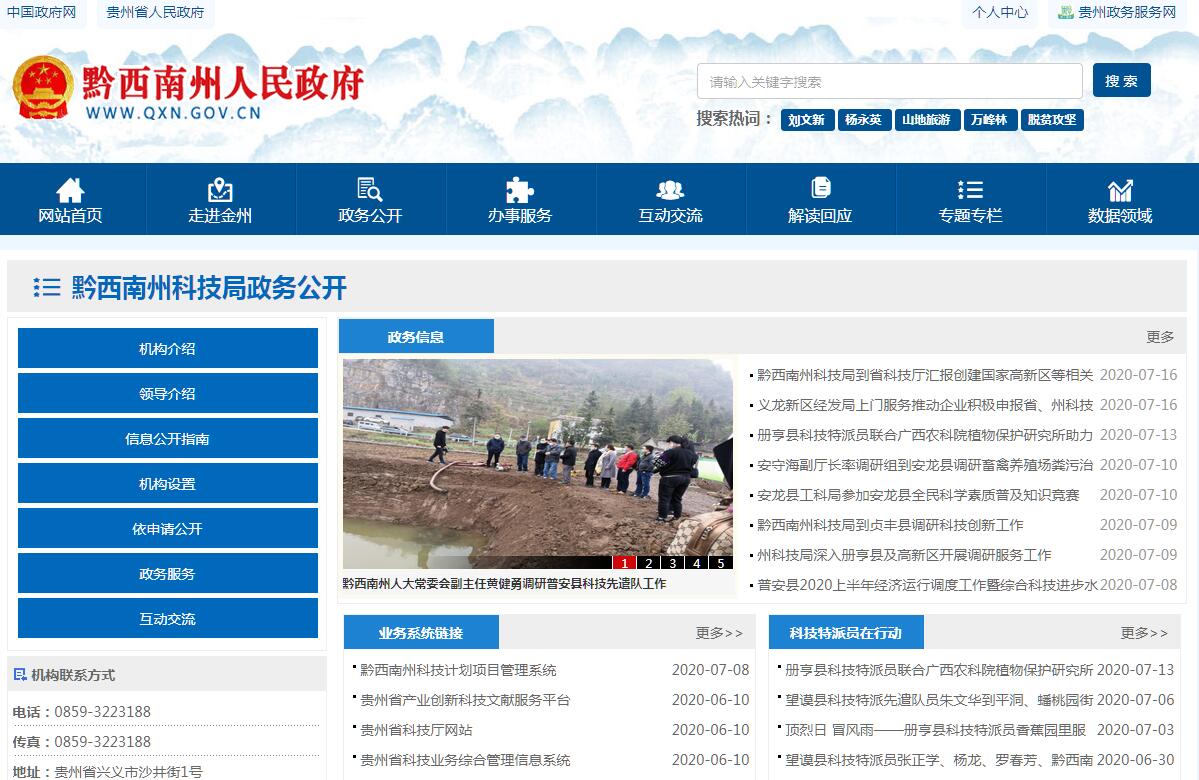 黔西南州科学技术局主要职责:(一)牵头拟订全州科技创新驱动发展政策措施以及科技发展、引进国外智力规划和政策并组织实施,起草有关法规规章草案。(二)统筹推进创新体系建设和科技体制改革,会同有关部门健全技术创新激励机制。指导区域创新发展、科技资源合理布局和协同创新能力建设。推进重大科技决策咨询制度建设。推动企业科技创新能力建设和科技园区建设。(三)牵头建立统一的科技管理平台和科研项目资金协调、评估、监管机制。会同有关部门提出优化配置科技资源的政策措施建议,推动多元化科技投入体系建设,协调管理州级财政科技计划(专项、基金等)并监督实施。(四)拟订基础研究规划、政策并组织实施,组织协调基础研究和应用基础研究。拟订科技创新基地建设规划并监督实施,参与编制科技基础设施建设规划和监督实施,推动科研条件保障建设和科技资源开放共享。(五)编制州级各类科技计划和重大科技项目规划并监督实施;统筹协调关键共性技术、前沿引领技术、现代工程技术、颠覆性技术研发和创新,牵头组织国民经济与社会发展重要领域的重大关键技术攻关和成果应用示范。(六)组织拟订高新技术发展及产业化、科技促进农业农村和社会发展的规划、政策和措施。组织开展重点领域技术发展需求分析,提出重点任务并监督实施。(七)牵头开展技术转移体系建设,拟订科技成果转移转化和促进产学研结合的相关政策措施并监督实施。推进科技服务业、技术市场和科技中介组织发展。负责黔西南州科学技术奖的评审组织工作。(八)负责科技监督评价体系建设和相关科技评估管理,组织开展科技评价机制改革,开展科研诚信建设。组织实施创新调查和科技报告制度,指导全州科技保密工作。(九)拟订科技对外交流与创新能力开放合作的规划、政策和措施,组织开展科技合作与科技人才交流。指导相关部门和地方对外科技合作与科技人才交流工作。(十)负责引进国外智力工作。拟订外国专家管理办法,归口管理来黔西南州的国(境)外专家,按程序办理外国专家来华许可事宜,推动建立外国高水平科学家、团队吸引集聚机制和重点外国专家联系服务机制。按规定承担外国人来华工作有关事项。(十一)会同有关部门拟订科技人才队伍建设规划和政策,建立健全科技人才评价和激励机制,组织实施科技人才计划,推动高层次科技创新人才队伍建设。拟订科学普及和科学传播规划、政策。(十二)负责州“星火计划、科技扶贫”试验区办公室日常工作。承担黔西南试验区科技项目与科技部及有关部门的联系、协调和服务工作。承担科技部及有关部门在黔西南试验区科技项目的组织实施、监督和管理工作。(十三)结合本部门职责,做好军民融合、扶贫开发、安全生产、消防安全、“放管服”改革相关工作。(十四)完成州委、州政府、省科技厅交办的其他任务。
