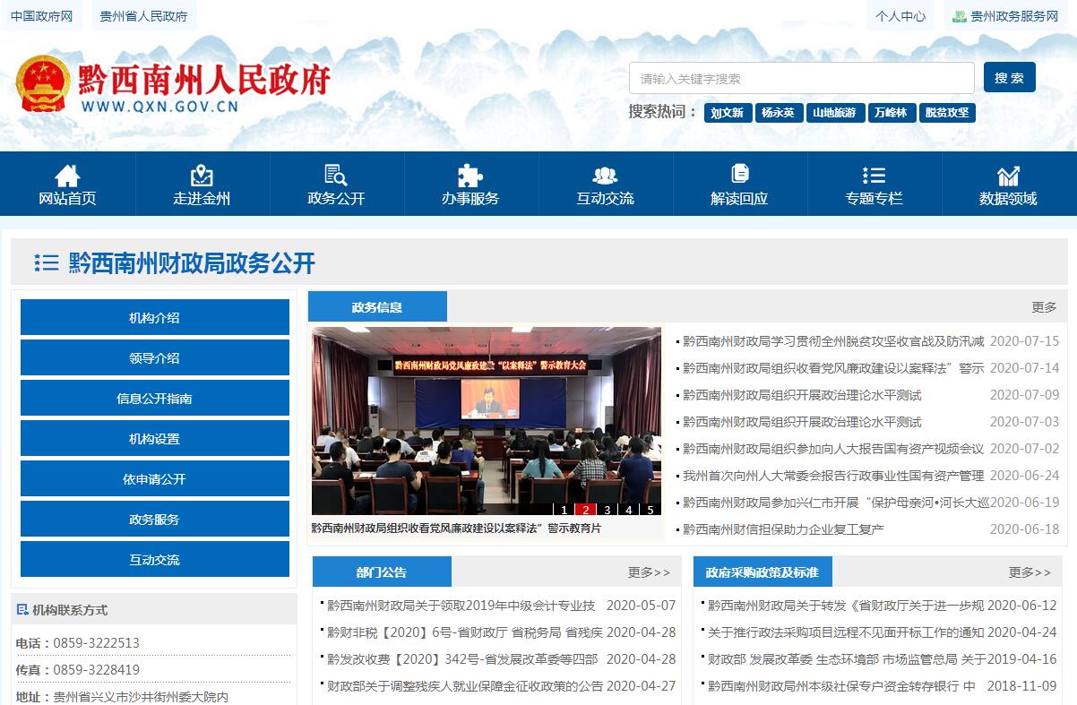 黔西南州财政局主要职责:(一)拟订并组织实施全州财税规划、政策和改革方案。分析预测经济形势,参与制定各项经济政策,提出运用财税政策实施综合平衡社会财力的建议,拟订相关分配政策,完善鼓励经济和社会发展的财税政策。(二)起草财政、财务、会计、债务管理等的地方性规章草案。(三)承担全州各项财政收支管理的责任。负责州级财政收支管理工作,负责编制年度州级财政预算草案并组织执行。受州政府委托,向州人民代表大会报告全州和州级财政预算及执行情况,向州人民代表大会常务委员会报告财政决算和国有资产管理情况。拟订经费开支标准、定额,负责审核批复部门(单位)的年度预决算。完善转移支付制度。(四)加强和改进预算管理,构建全面规范、公开透明的预算制度。(五)加强对地方政府债务管理的统筹、协调、指导,强化政府债务管理职责。(六)负责政府非税收入管理,承担行政事业性收费、政府性基金及其他非税收入管理工作。管理财政票据。按规定管理公益金。(七)拟订国库管理制度、国库集中收付制度,指导和监督国库业务,按规定开展国库现金管理工作。(八)拟定并组织实施政府采购制度和办法;管理和指导政府采购相关工作;执行政府采购相关法律法规;处理政府采购中的投诉事宜;会同有关部门查处专控商品和政府采购中的违法违纪行为。(九)拟订行政事业单位国有资产管理规章制度,管理行政事业单位国有资产。审核和汇总编制全州国有资本经营预决算草案,拟订国有资本经营预算的制度和办法,收取州本级企业国有资本收益,组织实施企业财务制度,参与拟订企业国有资产管理相关制度,按规定管理资产评估工作。(十)办理和监督州财政的经济发展支出、中央和省、州政府性投资项目财政拨款,贯彻执行州建设投资的有关政策、基本建设财务制度,负责有关政策性补贴和专项储备资金财政管理工作。(十一)会同有关部门管理州财政社会保障和就业及医疗卫生支出。会同有关部门拟订社会保障资金(基金)的财务管理制度,编制社会保障预决算草案。(十二)负责统一管理地方政府债务。执行国家政府债务管理和中央代地方发行国债管理的制度和政策,防范债务风险。按规定对国际金融组织以及外国政府对我州的贷(赠)款进行管理。(十三)负责地方金融企业财务监管工作。管理地方金融类企业国有资产。(十四)执行国家统一的会计制度,负责管理会计工作,监督和规范会计行为,承担会计专业技术资格管理工作, 指导代理记账管理工作。(十五)监督检查财税法规、政策的执行情况,提出加强财政管理的政策建议;组织开展行政事业单位内部控制的监督检查;负责财政重大支出的绩效评估工作。(十六)制定财政系统教育培训规划,组织财会人员开展财政、会计业务知识培训。开展财政业务重大问题的调研。(十七)负责全州财政系统信息化建设,加强计算机网络信息建设,为财政管理提供技术保障。负责财政信息和财政宣传工作。(十八)将州财政局农业综合开发项目管理职责划入州农业农村局;(十九)将州财政局的州级预算执行情况和其他财政收支情况的监督检查职责划入州审计局;(二十)结合部门职责,做好军民融合、扶贫开发、大数据等相关工作;负责本部门、本行业领域的安全生产和消防安全。(二十一)承办州委、州人民政府和省财政厅交办的其他事项。