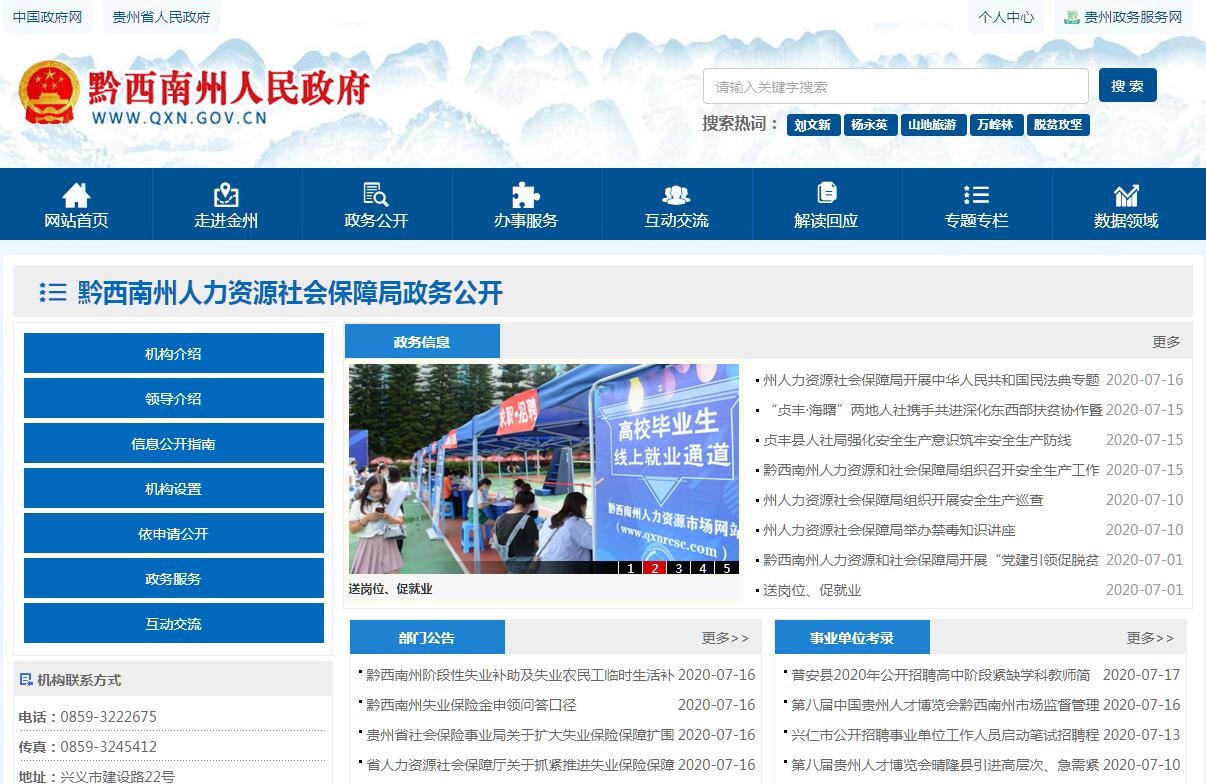 黔西南州人力资源和社会保障局主要职责:(一)贯彻执行国家及省人力资源和社会保障工作的方针、政策、法律、法规。编制全州人力资源和社会保障事业发展规划和年度计划,并组织实施和监督检查。(二)承担政府人才工作,协调配合相关单位拟定人才发展中长期规划和年度工作计划;承担全州人才资源开发和管理工作;承担州级人才津贴的兑现工作;牵头做好人才引进及人才在全州就业管理工作;承担博士后工作站、流动站的组建及其管理工作;建立统一规范的人力资源市场,促进人力资源合理流动、有效配置。(三)负责促进就业工作,拟定统筹城乡的就业发展规划和政策,完善公共就业服务体系,落实就业援助制度。完善职业资格制度,统筹建立面向城乡劳动者的职业培训制度;牵头拟订高校毕业生就业政策;会同有关部门拟订高技能人才、农村实用人才的培养和激励政策。(四)统筹推进建立覆盖城乡的社会保障体系。组织实施养老、失业、工伤等社会保险及其补充保险政策和标准。组织实施养老保险统筹和养老、失业、工伤保险关系转续政策。组织实施养老、失业、工伤等社会保险及其补充保险基金管理和监督制度,组织编制全州社会保险基金预决算草案,贯彻执行相关社会保障基金投资政策,按规定做好社会保险基金保值增值的监督管理工作。(五)负责就业和相关社会保险基金预测预警和信息引导,拟订应对预案,实施预防、调节和控制,保持就业形势稳定和相关社会保险基金总体收支平衡。(六)贯彻执行国家和省有关劳动争议、人事仲裁的法律、法规、规章、政策。完善劳动关系协调机制。督促落实消除非法使用童工政策和女工、未成年工的特殊劳动保护政策。组织实施劳动保障监察,协调劳动者维权工作,依法查处重大案件。(七)牵头推进深化职称制度改革,组织实施专业技术人员管理、继续教育等政策,负责高层次专业技术人才引进、选拔和培养工作。组织拟订技能人才培养、评价、使用和激励制度。完善职业资格制度,健全职业技能多元化评价政策。(八)贯彻执行事业单位人员工资收入分配政策,落实企事业单位人员工资决定、正常增长和支付保障机制。贯彻落实企事业单位人员福利和离退休政策。(九)会同有关部门指导事业单位人事制度改革,贯彻落实事业单位工作人员和机关工勤人员管理政策。按照管理权限负责规范事业单位岗位设置、公开招聘、聘用合同等人事综合管理工作。(十)会同有关部门拟订州级表彰奖励制度,综合管理表彰奖励工作,根据授权承办有关表彰奖励工作。(十一)贯彻落实农民工工作相关政策,协调解决重点难点问题,维护农民工合法权益。(十二)贯彻落实工伤预防、认定和康复政策;组织实施工伤伤残等级鉴定标准和工伤保险基金管理办法和定点医疗机构、药店、康复机构、辅助器具安装机构的标准。(十三)受理涉及人力资源和社会保障的信访事项,会同有关部门协调处理有关人力资源和社会保障方面的重大信访事件和突发事件。(十四)按规定承担外国人来华工作有关事项。(十五)结合部门职责、做好军民融合、扶贫开发等相关工作;加大科技投入,提高科技创新能力,为推进创新驱动发展提供保障;负责本部门、本行业领域的安全生产和消防安全工作;按规定做好大数据发展应用和政务数据资源管理相关工作,依法促进部门政务数据资源规范管理、共享和开放;积极推动“放管服”改革”职责。(十六)完成州委、州政府、省人力资源和社会保障厅交办的其他事项。