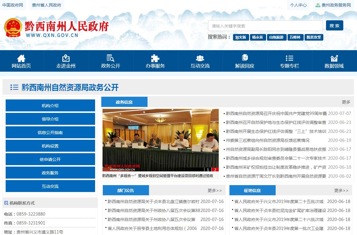 黔西南州自然资源局主要职责:(一)履行全民所有土地、矿产、森林、草原、湿地、水等自然资源资产所有者职责和所有国土空间用途管制职责。执行自然资源和国土空间规划及测绘等法律法规,拟订相关管理政策并监督检查执行情况。(二)负责自然资源调查监测评价。执行自然资源调查监测评价的指标体系和统计标准,执行自然资源调查监测评价制度。实施自然资源基础调查、专项调查和监测。负责自然资源调查监测评价成果的监督管理和信息发布。指导全州自然资源调查监测评价工作。(三)负责自然资源统一确权登记工作。贯彻执行各类自然资源和不动产统一确权登记、权籍调查、不动产测绘、争议调处、成果应用的制度、标准、规范。协助省级建立健全自然资源和不动产登记信息管理基础平台。负责自然资源和不动产登记资料收集、整理、共享、汇交管理等。指导监督全州自然资源和不动产确权登记工作。(四)负责自然资源资产有偿使用工作。建立全民所有自然资源资产统计制度,负责全民所有自然资源资产核算。编制全民所有自然资源资产负债表,执行考核标准。落实全民所有自然资源资产划拨、出让、租赁、作价出资和土地储备政策并监督实施,合理配置全民所有自然资源资产。负责自然资源资产价值评估管理,依法收缴相关资产收益。(五)负责自然资源的合理开发利用。贯彻执行自然资源发展规划,执行自然资源开发利用标准并组织实施,执行政府公示自然资源价格体系制度,组织开展自然资源分等定级价格评估,组织开展自然资源利用评价,指导节约集约利用。负责自然资源市场监管。组织研究自然资源管理涉及宏观调控、区域协调和城乡统筹的政策措施。(六)负责建立全州空间规划体系并监督实施。推进落实主体功能区战略和制度,组织编制并监督实施国土空间规划和相关专项规划。组织指导各县(市)规划编制工作,推动实施“多规合一”。开展国土空间开发适宜性评价,建立国土空间规划实施监测、评估和预警体系。组织划定生态保护红线、永久基本农田、城镇开发边界等控制线,构建节约资源和保护环境的生产、生活、生态空间布局。建立健全国土空间用途管制制度,研究拟订城乡规划政策并监督实施。组织拟订并实施土地等自然资源年度利用计划。负责土地等国土空间用途转用工作。负责土地征收征用管理。负责重大工程建设项目选址意见书办理工作。负责建设项目的规划选址意见书、建设用地规划许可和工程规划许可等规划管理监督工作。负责规划设计单位资质管理。承担州国土空间规划委员会日常工作。(七)负责统筹全州国土空间生态修复。牵头组织编制全州国土空间生态修复规划并实施有关生态修复重大工程。负责国土空间综合整治、土地整理复垦、矿山地质环境恢复治理等工作。承担生态保护补偿相关工作,制定合理利用社会资金进行生态修复的政策措施,提出重要备选项目。(八)负责组织实施最严格的耕地保护制度。贯彻落实耕地保护政策,制定州级耕地保护工作方案,负责耕地数量、质量、生态保护。组织实施耕地保护责任目标考核和永久基本农田特殊保护。实施耕地占补平衡制度,监督占用耕地补偿制度执行情况。(九)负责管理地质勘查行业和全州地质工作。编制地质勘查规划并监督检查执行情况,管理州级地质勘查项目,组织实施州级重大地质矿产勘查专项。负责地质灾害预防和治理,监督管理地下水过量开采及引发的地面沉降等地质问题。负责古生物化石的监督管理。(十)负责落实综合防灾减灾规划相关要求,组织编制全州地质灾害防治规划和防护标准并指导实施。组织指导协调和监督地质灾害调查评价及隐患的普查、详查、排查。指导开展群测群防、专业监测和预报预警等工作,指导开展地质灾害工程治理工作。承担地质灾害应急救援的技术支撑工作。(十一)负责矿产资源管理工作。负责矿产资源储量管理及压覆矿产资源审批。负责矿业权管理。会同有关部门承担保护性开采的特定矿种、优势矿产的调控及相关管理工作。监督指导矿产资源合理利用和保护。(十二)负责测绘地理信息管理工作。贯彻执行测绘地理信息工作方针、政策。负责基础测绘和测绘行业管理。负责测绘资质资格与信用管理,监督管理国家地理信息安全和市场秩序。负责地理信息公共服务管理。负责测量标志保护。(十三)推动自然资源领域科技发展。制定并实施自然资源领域科技创新发展和人才培养规划和计划。组织制定技术标准、规程规范并监督实施。组织实施重大科技工程及创新能力建设,推进自然资源信息化和信息资料的公共服务。(十四)根据授权,对地方政府落实党中央、国务院,省委、省政府、州委、州政府关于自然资源和国土空间规划的重大方针政策、决策部署及法律法规执行情况进行督察。查处自然资源开发利用和国土空间规划及测绘重大违法案件。指导县、乡级自然资源部门有关行政执法工作。(十五)结合部门职责,做好军民融合、扶贫开发等相关工作。负责本部门、本行业领域的安全生产和消防工作。(十六)统一领导和管理州林业局。(十七)完成州委、州人民政府和省自然资源厅交办的其他任务。
