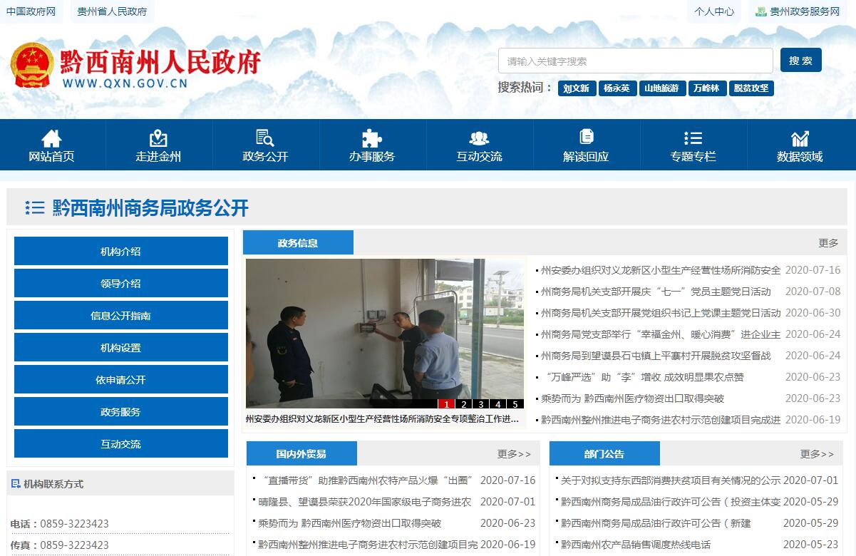 黔西南州商务局主要职责:(一)贯彻执行国家、省、州有关国内外贸易、招商引资、经济技术合作、餐饮服务、物资流通管理的方针、政策、法规,拟定相关政策和管理办法并监督、组织实施;指导协调州内各种经济成份的商业、外经贸、物资流通活动。(二)贯彻对外贸易的发展战略和促进国内外贸易发展的措施,指导、协调和管理全州利用外资工作;依照授权,负责审批设立外商投资企业,颁发批准证书,监督外商投资企业执行合同和章程;指导出口商品的反倾销、反补贴、保障措施的应诉及相关工作。 (三)根据授权,管理全州涉外经济活动,负责外经贸企业经营权的审核、登记设立、发证和年审工作;指导、组织有关企事业单位参加相关会展、贸易、洽谈会;指导、协调中国国际贸易促进会黔西南支会、中国国际商会黔西南州商会的工作。(四)研究全州对外经济技术合作的发展措施,负责“三资”企业、劳务出口等出国组团的报批。(五)协调指导全州利用内、外资工作和投资服务工作,会同有关部门研究拟定吸引和利用外商投资的有关政策,依照授权核定外商投资企业的设立及变更事项,负责外经贸相关业务统计;协调、指导经济技术开发区的管理工作。(六)指导协调和管理全州对外经济技术合作工作。会同有关部门组织协调全州与国家对外援助的活动和项目;协调、管理全州对外承包工程、劳务输出、劳务合同、设计咨询等工作;归口管理争取境外无偿援助工作。(七)承担商品流通、餐饮服务、商业、外经贸、物资流通行业管理并监督实施;监督企业和经营者执行国家法律、法规,加强对下属企事业单位的指导、服务。(八)研究提出全州流通体制改革方式和组织形式,负责推进连锁经营、电子商务、配送制、旧货流通等工作,促进流通产业现代化。(九)推进流通标准化,指导大宗产品批发市场规划和城市商业网点规划、商业体系建设工作,承担农村市场和农产品流通体系建设,组织实施农村现代流通网络工程。(十)承担全州重要消费品市场调控和重要生产资料流通管理工作,负责建立健全生活必需品市场供应应急管理机制,监测分析市场运行、商品供求情况,调查分析商品价格信息并进行预测、预警和信息引导。(十一)牵头协调全州整顿和规范市场经济秩序工作,贯彻执行规范市场运行、流通秩序的政策;推动商务领域信用建设,指导商业信用销售,建立市场诚信公共服务平台;按有关规定对拍卖、典当等特殊流通行业进行监督管理。(十二)指导商品流通活动,维护公平竞争秩序;负责商品市场的预测,提出调控市场的政策建议;负责全州商务系统业务、财务统计工作,提供信息咨询服务。(十三)负责行业质量体系论证、达标管理;协调内外贸信息化工作;研究拟定全州商品流通、外经贸连接国内外市场,利用外资、引进技术的规划。(十四)结合部门职责,做好军民融合、扶贫开发、“放管服”改革等相关工作;加大科技投入,提高科技创新能力,为推进创新发展提供保障;负责本部门、本行业领域的安全生产、消防安全工作;按规定做好大数据发展应用和政务数据资源管理相关工作,依法促进部门政务数据资源规范管理、共享和开放。(十五)完成州委、州政府、省商务厅交办的其他任务。
