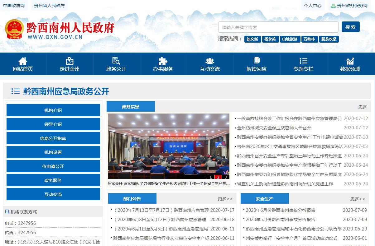 黔西南州应急局主要职责:(一)负责全州应急管理工作,指导全州各地各部门应对安全生产类、自然灾害类等突发事件和综合防灾减灾救灾工作。负责全州安全生产综合监督管理和工矿商贸行业安全生产监督管理工作(煤矿除外,下同)。(二)拟订全州应急管理、安全生产等政策措施,组织编制全州应急体系建设、安全生产和综合防灾减灾规划,起草相关规范性文件,组织拟订相关规程和标准并监督实施。(三)指导全州应急预案体系建设,建立完善事故灾难和自然灾害分级应对制度,组织编制黔西南州总体应急预案和安全生产类、自然灾害类专项预案并组织实施,综合协调应急预案衔接工作,组织开展预案演练,推动应急避难设施建设。(四)按要求牵头建立与国家和省应急管理信息系统相衔接的、全州统一的应急管理信息系统,负责信息传输渠道的规划和布局,建立监测预警和灾情报告制度,健全自然灾害信息资源获取和共享机制,依法统一发布灾情。(五)组织指导协调全州安全生产类、自然灾害类等突发事件应急救援,承担州政府应对重大灾害指挥部工作,综合研判突发事件发展态势并提出应对建议,协助州委、州政府指定的负责同志组织重大灾害应急处置工作。(六)统一协调指挥全州各类应急专业队伍,建立应急协调联动机制,推进指挥平台对接,衔接驻州解放军和武警部队参与应急救援工作。(七)统筹全州应急救援力量建设,按规定负责消防、森林和草原火灾扑救、抗洪抢险、地震和地质灾害救援、生产安全事故救援等专业应急力量建设,按规定管理州级综合性应急救援队伍和专业救援队伍,指导州内各地和社会应急救援力量建设。(八)按规定负责全州消防管理工作,组织指导消防监督、火灾预防、火灾扑救等工作。(九)指导协调森林和草原火灾、水旱灾害、地震和地质灾害等防治工作,负责自然灾害综合监测预警工作,指导开展自然灾害综合风险评估工作;承担州防汛抗旱指挥部、州森林防火指挥部和州抗震救灾指挥部日常工作。(十)组织协调全州灾害救助工作;组织指导灾情核查、损失评估、救灾捐赠工作,协调州发改委按需分配中央、省下拨和州级救灾款物;承担州减灾委员会日常工作。(十一)依法行使全州安全生产综合监督管理职权。指导协调、监督检查州级有关部门和州内各地安全生产工作,组织开展安全生产巡查、考核工作;承担州安全生产委员会日常工作。(十二)按照分级、属地原则,依法监督检查工矿商贸生产经营单位贯彻执行安全生产法规规章情况及其安全生产条件、设备(特种设备除外)、材料、劳动防护用品的安全生产管理工作。依法组织并监督实施安全生产准入制度。负责危险化学品安全监督管理综合工作和危险化学品登记;负责烟花爆竹安全生产监督管理工作。(十三)依法组织指导开展生产安全事故调查处理,监督事故查处和责任追究落实情况;组织开展自然灾害类突发事件的调查评估工作。(十四)拟订全州应急物资储备和应急救援装备规划并组织实施,会同州发改委等部门建立健全应急物资信息平台和调拨制度,在救灾时统一调度。(十五)负责应急管理、安全生产和综合防灾减灾宣传教育和培训工作,组织指导应急管理、安全生产和综合防灾减灾的科学技术规划研究、推广应用和信息化建设工作。(十六)根据州委、州人民政府和省应急管理厅的决策部署,开展应急管理方面的跨区域交流合作和应急救援。(十七)结合部门职责,做好相关工作;推进全州应急管理职能转变、简政放权、放管结合、优化服务改革,深化行政审批制度改革工作。(十八)完成州委、州人民政府和省应急管理厅交办的其他任务。