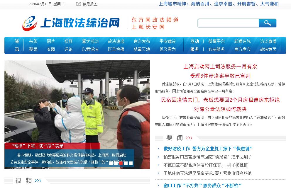 | 网站简介: 上海政法综治网是上海政法综治网络宣传的官方网站,信息全面、内容权威,为市民提供各种便捷的政法服务功能。网站信息来自政法、综治、公安、检察、法院、司法等政法各部门,深入报道平安建设、矛盾化解、社会管理等工作情况。网站服务包括治安、户口、交通、诉讼、公证、法律援助、法律法规搜索、政法黄页等。 |