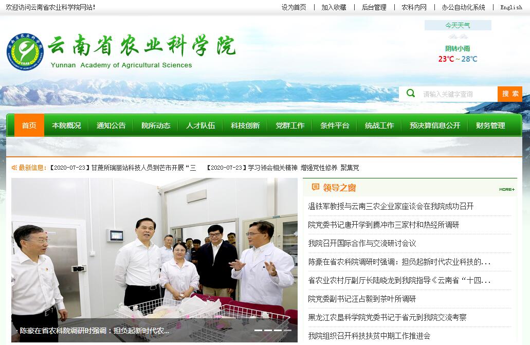 1976年,撤销云南省农业科学研究所,成立云南省农业科学院。目前省农科院是省政府直属的多学科、综合性、公益性的农业科研机构,承担着云南省全局性、关键性、战略性重大农业科技问题的研究和创新任务,以及紧紧围绕服务“三农”这一根本任务,全力抓好科技创新与成果转化工作,为云南粮食安全、特色农业产业发展、农业生物资源开发、科技扶贫及生态安全作出了重要贡献。全院下设粮食作物、经济作物、园艺、花卉、生物技术与种质资源、农业质量标准与检测、农业资源环境、农业经济与信息、药用植物、农产品加工、国际农业、高山经济植物、热带亚热带经济作物、甘蔗、茶叶、蚕桑蜜蜂、热区生态农业等17个专业研究所,其中昆明有11个研究所,其他6个研究所分布在楚雄、保山、红河、版纳、丽江等5个州(市)。全院学科发展涵盖了种植业主要农业产业和相关农业科研领域。“十一五”期间,根据农业部对全国1058个独立运行的地市级以上农业科研机构科研综合能力评估结果,我院有6个研究所进入全国100强。“十二五”以来,我院获省部级以上科技奖励72项,其中国家科技进步二等奖1项;通过国家和省级审(认、鉴)定、登记农作物新品种236个,国审品种数占全省的100%;新品种保护授权70项、专利授权195项。截止目前,在职职工1671人,在职专业技术人员1315人,其中正高级人员224人,副高级人员429人。新世纪国家百千万人才4人,云南省科技领军人才(院士后备人才)2人,国家科技创新领军人才1人,“云岭学者”2人,云南产业技术领军人才9人。引进9名院士专家合作设立院士工作站,院内35名专家获准设立38个专家基层工作站。云南省学术技术带头人和技术创新人才115人,省委联系专家23人,省级团队10个,农业部团队3个,全国农业科研杰出人才3人,引进高端科技人才(含海外高层人才)10人。全院29名专家担任国家农业产业技术体系岗位科学家和综合试验站站长,48名专家担任省农业产业技术体系首席科学家和岗位专家。拥有国家观赏园艺工程技术研究中心等科技创新平台173个,其中国家级平台67个,省级平台106个。“十三五”是我省全面深化改革、加快转变经济发展方式的攻坚期,是国家实施创新驱动发展战略和云南实施创新型云南行动计划的关键时期,是云南省推进“两型三化”发展和推进高原特色农业现代化、全力建设八大产业的攻坚时期。省农科院将始终坚持科研立院、人才强院、服务兴院、开放办院、依法治院的方针,秉持“笃耕云岭、致惠民生”院训与农科精神,认真贯彻创新、协调、绿色、开放、共享的发展理念,按照省委省政府相关要求,紧紧围绕全省发展的新目标新定位新要求,始终坚持以科技创新为中心,深刻把握全省农业农村经济发展和农业科技发展新形势、新动向和新特征,主动适应新常态,聚焦农业供给侧改革,落实国家藏粮于技战略及创新型云南行动计划,坚持突出重点的原则,把全院学科领域调整为6大学科重点学科群、13个重点研究领域和42个重点研究方向,突出具有特色的生物育种、现代农业产业体系建设、农产品质量安全、农业装备、农业生态环境保护等重大科技需求,以及生物种业、大健康产业、生态产品、农业观光旅游农业走出去等新兴产业、新型业态发展需求,狠抓新品种、新技术推广及新产品开发,抢抓机遇,厚植优势,凝练重大科技命题进行研究,抢占制高点,产出一批以新品种、新技术、新产品、新标准为标志的重大科技成果,形成一批国内具有不可替代性、不可复制性的研究特色,加快推进具有区域特色的高水平省级农业科学院建设,为推进高原特色农业现代化和农业科技创新作出新贡献。