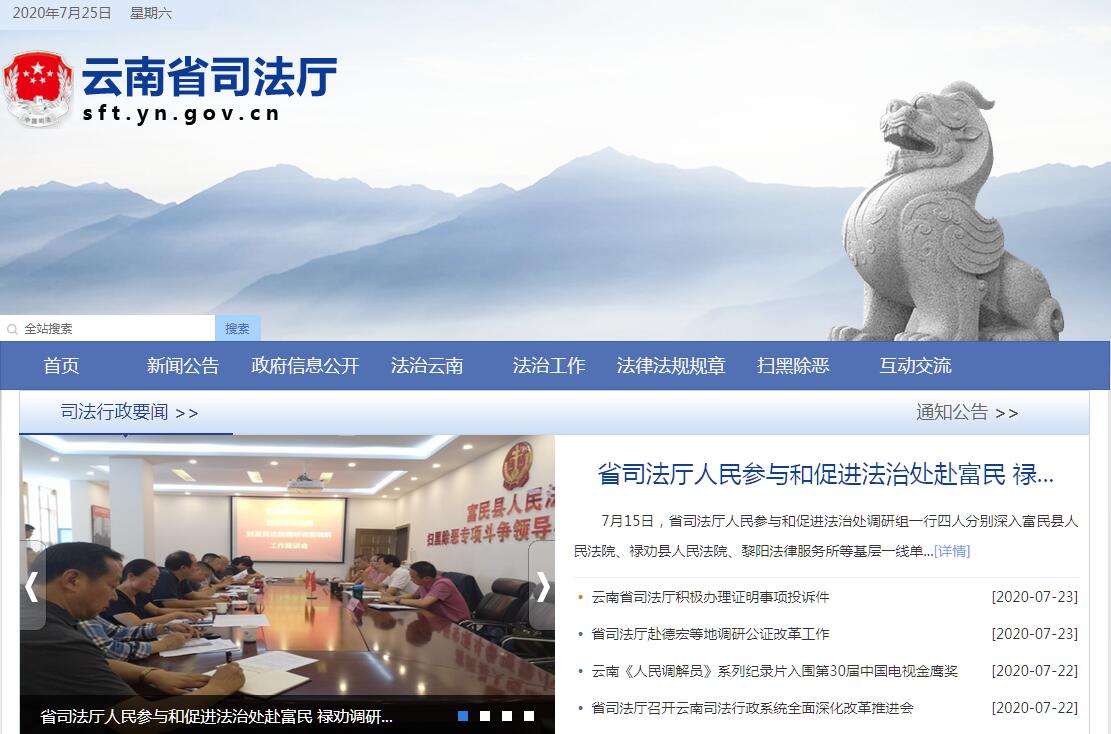 云南省司法厅主要职责:(一)承担全面依法治省重大问题的政策研究,协调有关方面提出全面依法治省中长期规划建议,负责有关重大决策部署督察工作。(二)承担统筹规划立法工作的责任。拟订省政府中长期立法规划和年度立法工作计划,负责跟踪了解各部门对立法工作计划的落实情况,加强组织协调和督促指导,研究提出立法与改革决策相衔接的意见、措施。负责面向社会征集地方性法规、省政府规章制定项目建议。(三)负责起草或者组织起草重要地方性法规、省政府规章草案。承办各部门报送省政府的地方性法规、省政府规章草案的审查工作。负责省政府规章报送国务院、省人大常委会的备案工作。负责立法协调。(四)承办省政府规章的解释、立法后评估工作。负责协调实施省政府规章中的有关争议和问题。承办省政府规章清理、编纂工作,组织翻译、审定省政府规章外文正式译本。负责州(市)政府规章的备案审查工作。负责审核各部门编辑的法规文件汇集。(五)负责国家有关部门和省人大常委会征求省政府意见的法律草案、法规草案、部门规章草案的办理工作。(六)承担统筹推进法治政府建设的责任。指导、监督省政府各部门、地方各级政府依法行政工作。负责综合协调行政执法,承担推进行政执法体制改革有关工作,推进严格规范公正文明执法。监督、指导行政复议、行政应诉、行政赔偿、行政补偿工作。负责省政府的行政复议、行政应诉、行政赔偿、行政补偿案件的处理工作。(七)承担统筹规划法治社会建设的责任。负责拟订法治宣传教育规划,组织实施普法宣传工作,组织对外法治宣传。推动人民参与和促进法治建设。指导依法治理和法治创建工作。指导调解工作和人民陪审员、人民监督员选任管理工作,推进司法所建设。(八)管理云南省监狱管理局。指导、监督刑罚执行和罪犯改造工作。指导、管理社区矫正工作。指导刑满释放人员安置帮教工作。(九)管理云南省戒毒管理局。指导、监督强制隔离戒毒执行和戒毒康复工作。对社区戒毒和社区康复工作提供指导、支持和协助。(十)负责拟订全省公共法律服务体系建设规划并指导实施,统筹和布局城乡、区域法律服务资源。指导、管理律师、法律援助、司法鉴定、公证工作。指导、监督仲裁和基层法律服务工作。(十一)负责国家统一法律职业资格考试的组织实施工作。负责国家统一法律职业资格审核和资格证书管理工作。负责规划和指导法律职业人员入职前培训工作。(十二)负责本系统服装和警车管理工作,指导、监督本系统财务、装备、设施、场所等保障工作。(十三)负责本系统直属单位内部审计工作。承担本系统信息化建设和有关外事工作。(十四)规划、协调、指导法治人才队伍建设有关工作,指导、监督本系统队伍建设。负责本系统直属单位领导班子建设工作。负责本系统警务管理和警务督察工作。协助州(市)管理司法局和其所属强制隔离戒毒所领导干部。(十五)完成省委、省政府交办的其他任务。
