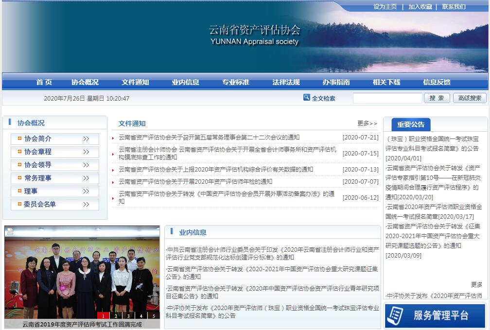 | 网站简介: 云南省资产评估协会是中国资产评估协会的地方组织,依法接受省财政厅、省民政厅和中国资产评估协会的监督和指导。协会的宗旨是:加强全省资产评估行业的自律管理,指导、监督会员规范执业;维护会员合法权益和社会公众利益,服务于会员、服务于行业、服务于市场经济;提高会员专业技能和职业道德素养,提升全省资产评估行业的社会公信力;协调全省资产评估行业内外关系,扩大省内外影响力;充分调动各方面积极性,全面促进全省资产评估行业的持续健康发展。 |