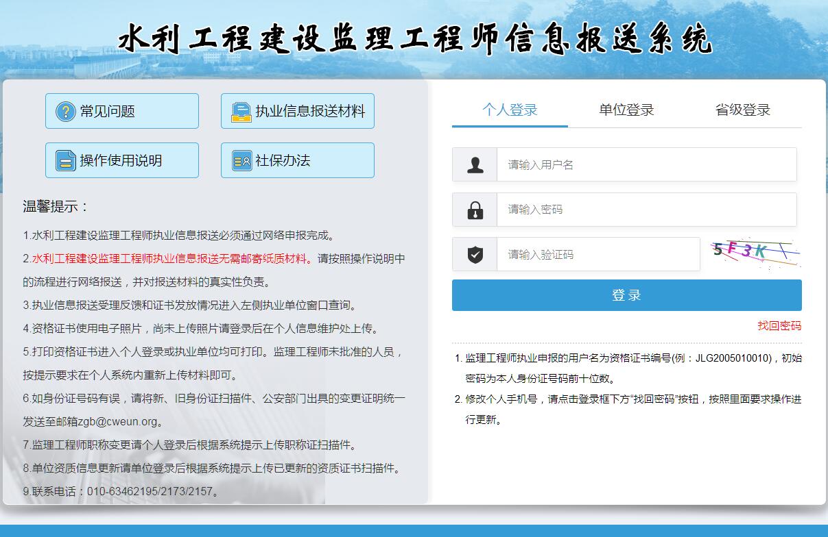 水利工程建设监理工程师信息报送系统