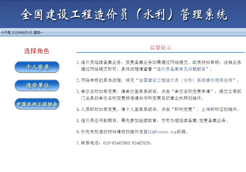 全国建设工程造价员(水利)管理系统