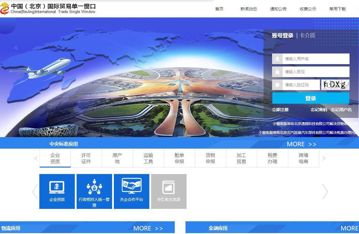 | 网站简介: 中国(北京)国际贸易单一窗口平台(以下简称“北京单一窗口”)是由北京市商务局(北京市人民政府口岸办公室)主导,海关、边检、商务、国税、工商、外汇等10余个单位积极参与建设的公益性公共服务平台。北京单一窗口是在北京电子口岸平台基础上打造的“互联网+口岸”模式的通关物流服务平台,平台以提升北京市外贸营商环境为基本目标,以国家“单一窗口”标准版为依托,以建设空港“单一窗口”数据枢纽为建设核心,以打造北京市外贸业务运行管理平台为重点,内联市内各口岸,外联津冀及全国各口岸,让企业只需通过一个入口就可办理北京乃至津冀地区的通关物流业务。 |