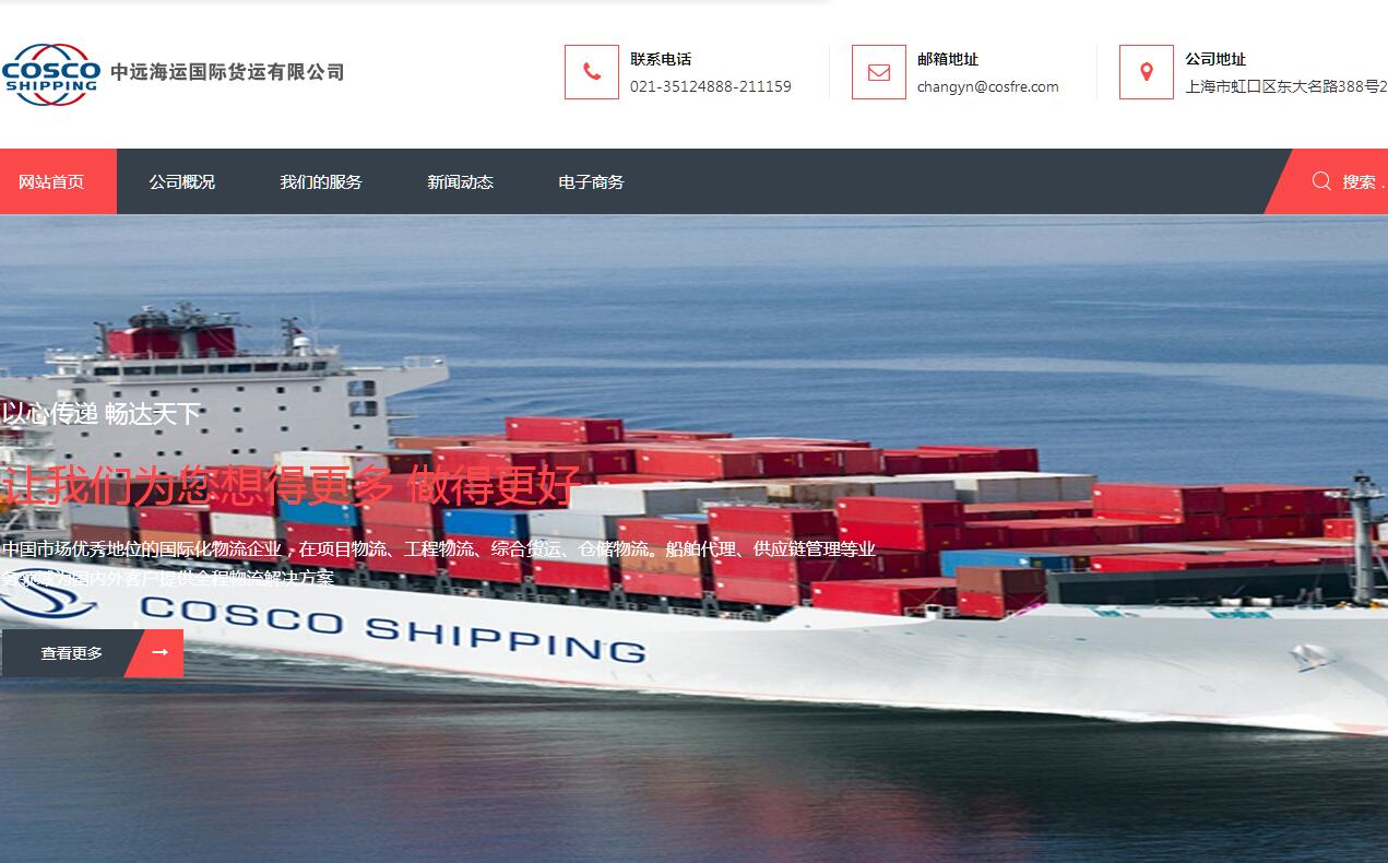 中远海运国际货运有限公司成立于1995 年12月,是中国远洋控股股份有限公司的成员企业之一,是中远集装箱运 输有限公司直属的大型国际货运及班轮代理公司。公司经营范围包括:国际、国内海上集装箱货运代理,国际、国内集装箱及其它船舶代理,沿海货物运输、拼箱、项目运输、多式联运、报关、货运保险等 业务。截止至今,中远海运国际货运有限公司形成了以北京为中心,以大连、天津、青岛、武汉、上海、厦门、华南为龙头,以全国主要城镇货运网点为依托的货运综合服务网络体系。在国际货运、集装箱船代、 多式联运、拼箱、项目开发等方面,业务规模和综合实力均位居国内同业前列。中远海运国际货运有限公司被中国银行审定为AAA级资信企业;1997年,通过挪威船级社和中国进 出口商品质量认证中心ISO9002质量保证体系认证。自2004年起,在全国货运行业各类大型评选活动中,连续多年获得多个奖项的桂 冠,多次荣获“全国最佳物流企业”、“最佳货代公司”、“最佳船代企业”等荣誉称号。中远海运国际货运有限公司将秉承“以市场为导向,以客户满意为中心”的经营理念,不断拓展综合 服务领域,满足客户多样化的服务需求,竭诚为客户创造更多价值。