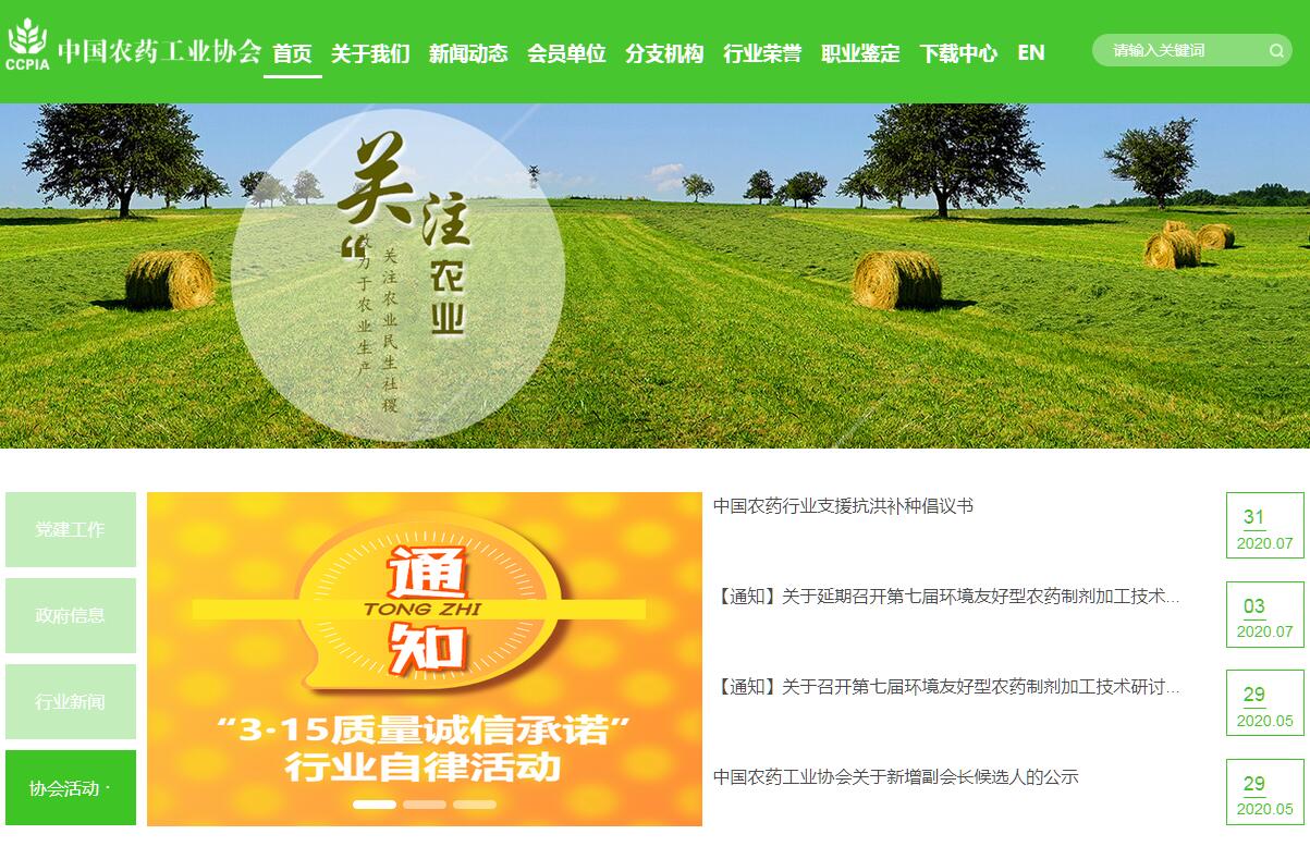中国农药工业协会(China Crop Protection Industry Association缩写“CCPIA”)成立于1982年4月,是中国化工行业最早成立的行业协会之一,是跨地区、跨部门、跨行业的具有独立法人资格的全国非营利性社团组织。协会的职责与职能包括:1、宣传贯彻国家有关法律、法规、条例,协调企业依法经营;2、向政府有关部门反映行业情况及企业经营中的问题和要求,提出相关政策建议;3、推进知识产权保护工作,维护会员的合法权益;4、组织行业信息交流,分析行业经济运行情况,了解行业发展中的热点和问题,向政府和企业提出相应的政策建议和具体措施;5、组织调查研究,了解、掌握全球农药工业技术发展动向及市场状况,为会员提供技术和信息服务;6、组织会员之间的技术交流和协作、技术改造协同攻关,推进国际经济技术交流及合作;7、促进行业自律,规范行业行为,推动诚信经营,协调市场争端,维护公平竞争;8、组织人才、技术、管理、法规与职业培训;9、出版专业刊物《中国农药》、《中国农药工业年鉴》和《China Agrochemicals》、建立专业网站(www.ccpia.com.cn),开展咨询服务;10、举办全国性交流会及各类专业交流会、展览会(www.agrochemex.net);11、参与制定农药产业政策、发展规划、行业规范和技术标准的研究、制定工作以及建设项目的论证和环境影响评价;12、受国家相关管理部门委托,承担农药生产批准证书发放的前期工作,参与有关调查研究、政策拟定、现场考核工作;13、承担有关农药检测单位的管理工作;14、协助国家相关管理部门的农药生产企业核准及延续核准工作,配合建立现场考核专家库、规范考核程序、统一工作流程和操作细节;15、大力推行以安全、健康、环境为中心的“责任关怀”(EHS)准则,树立良好的行业形象;16、鼓励企业采用“绿色工艺”,减少“三废”排放,保护环境;17、起草制定行业GMP标准,提高行业整体水平;18、参与制定国家“国家职业分类大典修订”工作,组建“国家化工行业特有工种职业技能” 鉴定站,化工行业特有工种职业技能鉴定工作;19、组建 “中国农药工业产业园”,促进农药工业集约化生产,有利于环境保护,有利于资源循环利用;20、设立 “振兴中国农药工业”奖学金,奖励农药专业博士、硕士和本科学生。