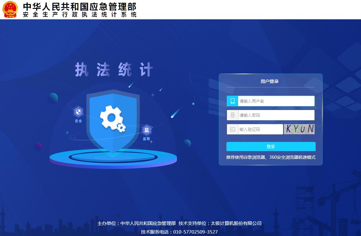 | 网站简介: 安全生产行政执法统计系统由中华人民共和国应急管理部主办。 |