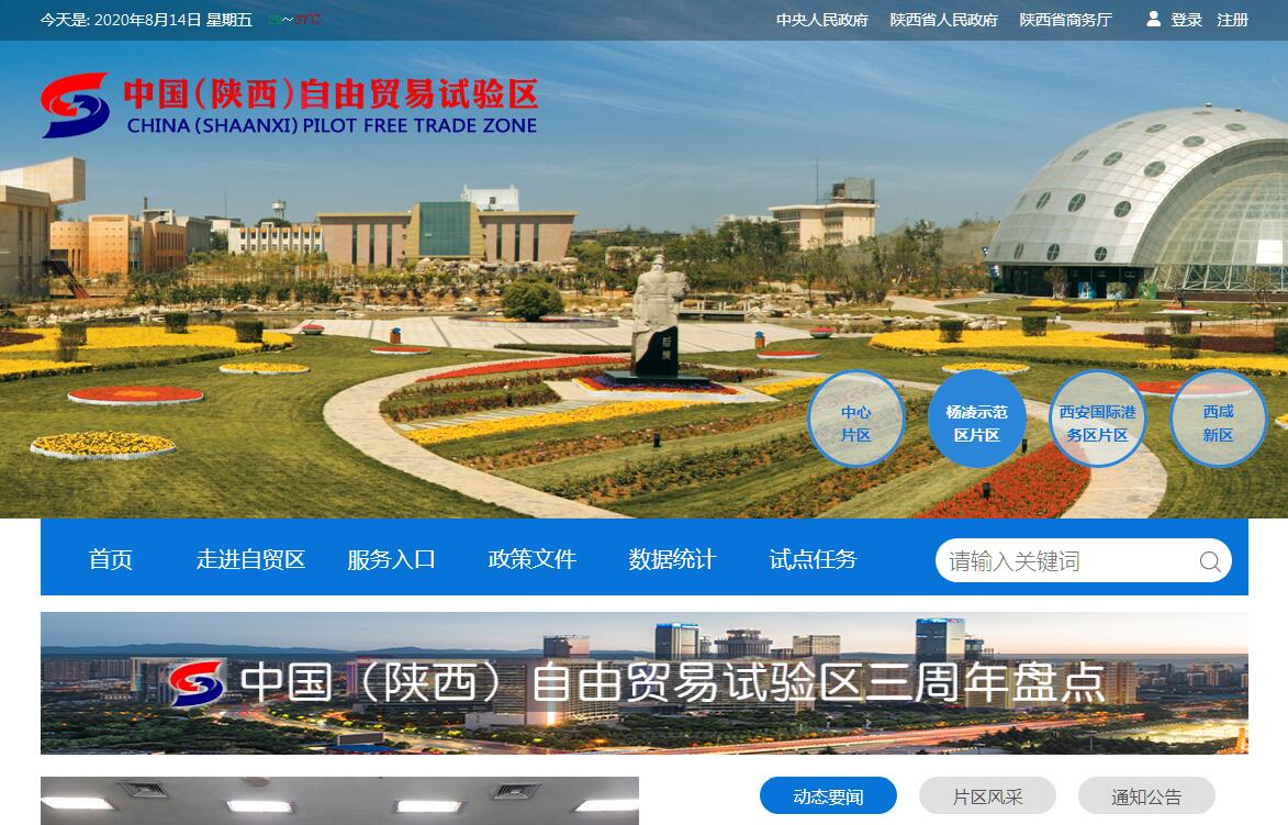 中国(陕西)自由贸易试验区是党中央、国务院2016年8月31日批准设立的我国第三批自由贸易试验区,是西北地区唯一的自由贸易试验区。中国(陕西)自由贸易试验区的战略定位是:以制度创新为核心,以可复制可推广为基本要求,全面落实党中央、国务院关于更好发挥“一带一路”建设对西部大开发带动作用、加大西部地区门户城市开放力度的要求,努力将自贸试验区建设成为全面改革开放试验田、内陆型改革开放新高地、“一带一路”经济合作和人文交流重要支点。中国(陕西)自由贸易试验区总面积119.95平方公里,涵盖三个片区:中心片区87.76平方公里(含陕西西安出口加工区A区0.75平方公里、B区0.79平方公里,西安高新综合保税区3.64平方公里和陕西西咸保税物流中心〔B型〕0.36平方公里,包括西安高新区>、西安经开区和西咸新区沣东新城、秦汉新城、空港新城部分区域;西安国际港务区片区26.43平方公里(含西安综合保税区6.17平方公里),包括西安国际港务区和西安浐灞生态区部分区域;西安杨凌示范区片区5.76平方公里,包括杨凌示范区部分区域。自贸试验区中心片区重点发展战略性新兴产业和高新技术产业,着力发展高端制造、航空物流、贸易金融等产业,推进服务贸易促进体系建设,拓展科技、教育、文化、旅游、健康医疗等人文交流的深度和广度,打造面向“一带一路”的高端产业高地和人文交流高地;西安国际港务区片区重点发展国际贸易、现代物流、金融服务、旅游会展、电子商务等产业,建设“一带一路”国际中转内陆枢纽港、开放型金融产业创新高地及欧亚贸易和人文交流合作新平台;杨凌示范区片区以农业科技创新、示范推广为重点,通过全面扩大农业领域国际合作交流,打造“一带一路”现代农业国际合作中心。经过三至五年改革探索,中国(陕西)自由贸易试验区将形成与国际投资贸易通行规则相衔接的制度创新体系,营造出法治化、国际化、便利化的营商环境,努力建成投资贸易便利、高端产业聚集、金融服务完善、人文交流深入、监管高效便捷、法治环境规范的高水平高标准自由贸易园区,推动“一带一路”建设和西部大开发战略的深入实施。