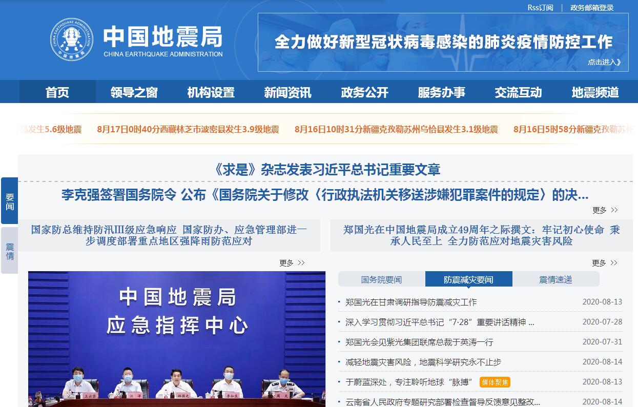 中国地震局负责管理全国地震工作、经国务院授权承担《中华人民共和国防震减灾法》赋予的行政执法职责。中国地震局成立于1971年,时称国家地震局,1998年更名为中国地震局,2018年由中华人民共和国应急管理部管理。其主要职责是:(一)拟定国家防震减灾工作的发展战略、方针政策、法律法规和地震行业标准并组织实施。(二)组织编制国家防震减灾规划;拟定国家破坏性地震应急预案;建立破坏性地震应急预案备案制度;指导全国地震灾害预测和预防;研究提出地震灾区重建防震规划的意见。(三)制定全国地震烈度区划图或地震动参数区划图;管理重大建设工程和可能发生严重次生灾害的建设工程的地震安全性评价工作,审定地震安全性评价结果,确定抗震设防要求。(四)依照《中华人民共和国防震减灾法》的规定,监督检查防震减灾的有关工作。(五)对省、自治区、直辖市地震局实施以中国地震局为主的双重领导,建立和完善相应的管理与计划财务体制;指导省级以下地震工作机构的工作;管理局直属事业单位。(六)管理全国地震监测预报工作;制定全国地震监测预报方案并组织实施;提出全国地震趋势预报意见,确定地震重点监视防御区,报国务院批准后组织实施。(七)承担国务院抗震救灾指挥机构的办事机构职责;对地震震情和灾情进行速报;组织地震灾害调查与损失评估;向国务院提出对国内外发生破坏性地震作出快速反应的措施建议。(八)指导地震科技体制改革;拟定地震科技发展规划和政策;组织地震科技研究与国家重点地震科技项目攻关;组织协调地震应急、救助技术和装备的研究开发; 指导地震科技成果的开发与应用;承担地震科技方面的对外交流与合作。(九)指导防震减灾知识的宣传教育工作。(十)管理、监督地震事业费、基本建设经费和专项资金的使用。(十一)承办国务院交办的其他事项。