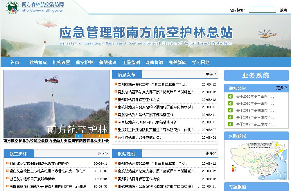 南方森林航空消防网由南方航空护林总站主办。南方航空护林总站成立于1961年,2018年7月转隶中华人民共和国应急管理部,属正司局级公益一类事业单位,是国家森林草原防灭火指挥部、应急管理部对我国南方地区航空应急救援工作履行指导部署、组织协调、监督检查、考核评估、培训认证等职责的延伸机构。主要承担黄河以南18省(区、市)航空应急救援、特别是森林航空消防工作,同时履行“南方森林防火协调中心”“西南卫星林火监测分中心”“西南森林防火物资储备中心”“南方森林航空消防训练基地”等4项职能。一套机构,五块牌子。业务管理范围包括黄河以南18省(区、市),国土面积共计419万平方千米,其中在浙、闽、赣、鲁、豫、鄂、湘、粤、桂、渝、川、滇等12省(区、市)成立了19个航空护林站(局、总队),包括13个省属航站、6个直属航站、1个市属航站;设立50个季节性航空护林飞行基地,开辟航空护林航线333条,航线总长度116798千米,航空护林覆盖面积约247万平方千米,约占我国国土总面积25.7%,约占南方18个省(区、市)国土总面积的60%。在南方广大林区、山区形成了布局合理,网格化分布的航空护林应急救援保障体系。使用主要直升机型有M-26、M-171、M-8、K-32、K-MAX、H-225、H-125、EC-135、S-76、S-92、BELL-412、BELL-429、AW-139等,主要固定翼机型有Y-12、C-90、C-280等,以及长航时大型无人机和便携式小型无人机等。