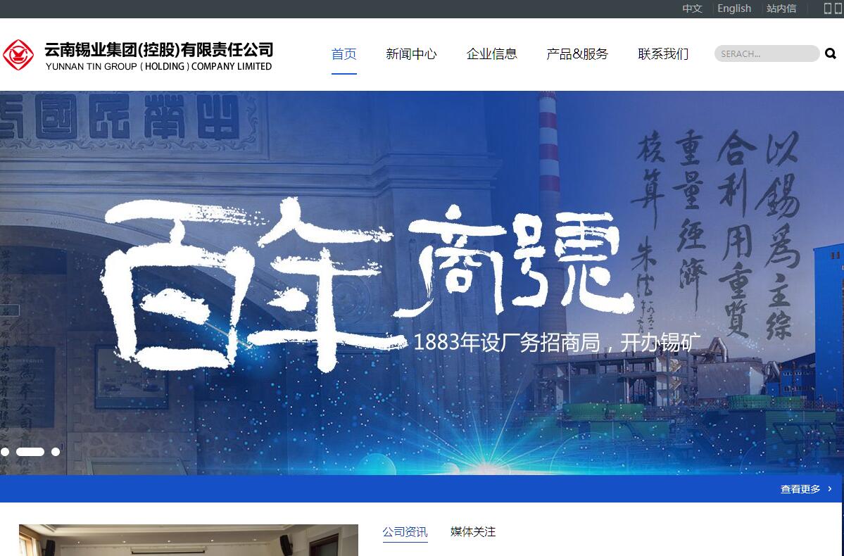 云南锡业集团(控股)有限责任公司(以下简称云锡)成立至今已有130多年的历史,是著名的锡生产、加工基地。云锡前身是清光绪九年(1883年)清政府建办的个旧厂务招商局,是云南工业文明的两大摇篮之一,新中国成立后,国家把云锡作为全国156个重点建设项目之一加以投资建设。经过100多年的发展,云锡已发展成为集地质勘探、采矿、选矿、冶炼、锡化工、砷化工、锡材深加工、有色金属新材料、贵金属材料、建筑建材、房地产开发、机械制造、仓储运输、国际物流、科研设计和产业化开发等为一体的国有特大型有色金属联合企业。云锡是国家500强企业之一,云南省重点培育的十大企业集团之一,具有较强的国际竞争力。云锡有包括云南锡业股份有限公司在内的140多个下属单位。在北京、上海、湖南、深圳、武汉、成都、昆明以及香港、美国、德国、澳大利亚等均设有下属公司及机构。云锡现有年产8万吨锡锭、10万吨阴极铜、2.4万吨锡化工、3.8万吨锡材和12万吨锌精矿含锌的产能规模。主要产品有锡锭、阴极铜、铟锭、银锭、铋锭、锌精矿、锡铅焊料及无铅焊料,锡材、锡基合金、有机锡及无机锡化工产品等共20个系列660多个品种。有41种产品和设备出口56个国家和地区。主导产品“云锡牌”精锡是“中国名牌产品”、国家质量免检产品,在伦敦金属交易所注册“YT”商标,是国际知名品牌,国内市场占有率约为50%,全球市场占有率约为20%。锡铅焊料获国家质量金奖。公司通过了ISO10012.1计量检测体系认证、ISO9001质量管理体系认证和ISO14001环境管理体系认证。云锡在锡矿采、选、冶、锡化工、锡材深加工、砷化工和贵金属研究等方面具有先进的技术开发能力,拥有自主知识产权,有先进的采、选、冶生产装备。通过上百年的积累,云锡形成了具有鲜明自身特色的管理优势和优良的企业文化,有很好的社会形象、企业信誉和融资渠道,有一支经过困难长期磨炼的素质较高的干部队伍和职工队伍。公司先后被评为“全国思想政治工作优秀企业”,全国“五一”劳动奖状,“全国先进基层党组织”,全国国有企业创建“四好”领导先进集体称号,全国“守合同、重信用”企业称号,以及“全国用户满意企业”“2006年度全国最具影响力企业”“中国最具创造力企业”“中国名牌产品”等荣誉称号。