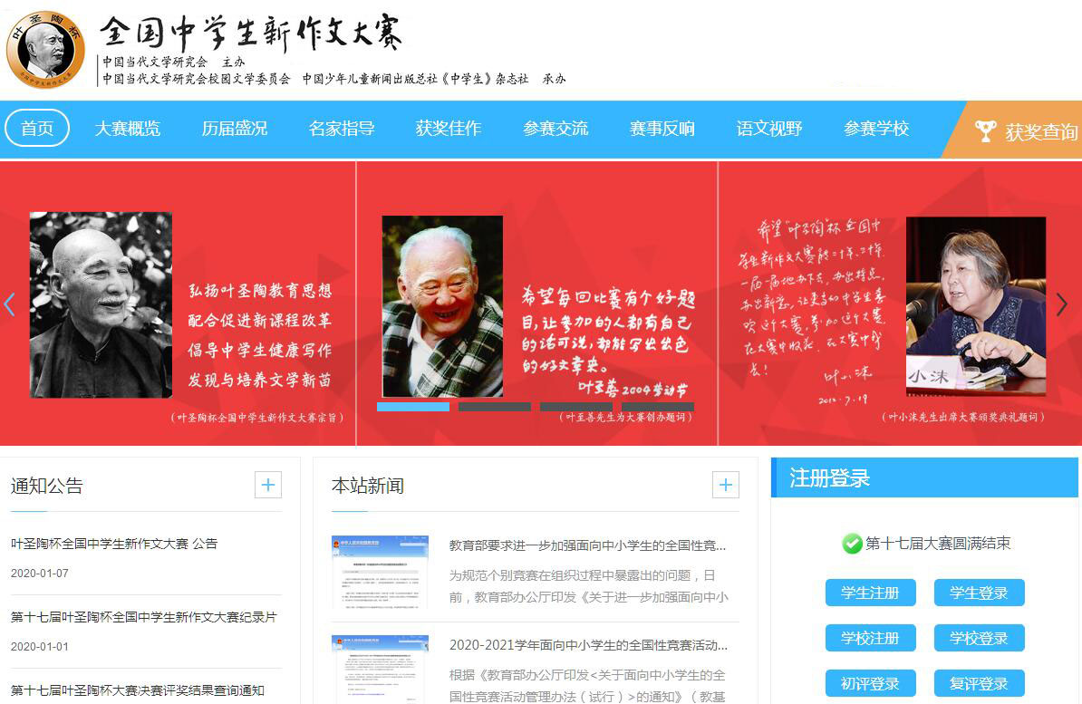 | 网站名称: | “叶圣陶杯”全国中学生新作文大赛 | ||