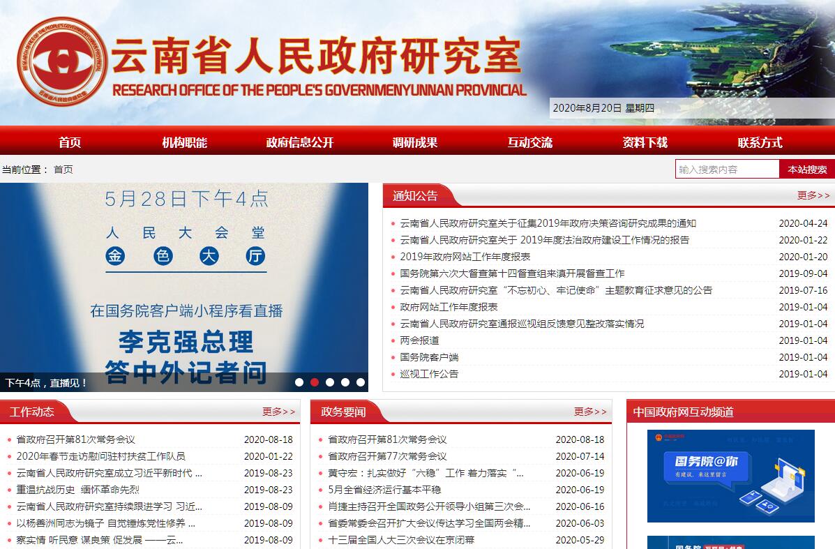 | 网站简介: 云南省人民政府研究室主要职责:1.负责起草政府工作报告和省政府重要文件,参与起草省委有关重要文件;2.负责起草省政府领导同志重要讲话等文稿;3.围绕省委、省政府中心工作和重大部署,对全面深化改革和经济社会发展中的重大问题开展调查研究和决策咨询,提出政策性建议和咨询意见;4.加强对国内外、省内外经济形势和社会发展政策的分析研究,提出政策建议和咨询意见;5.收集、整理、分析省内外经济社会发展的重要信息和动态,为省政府决策提供参考建议。6.收集、分析、运用各类智库研究成果,为省政府决策提供咨询服务。7.承办省政府交办的其他事项。 |