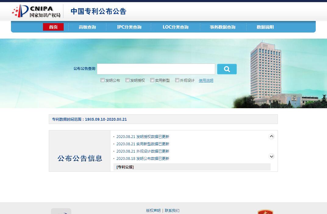 中国专利公布公告由国家知识产权局主办。